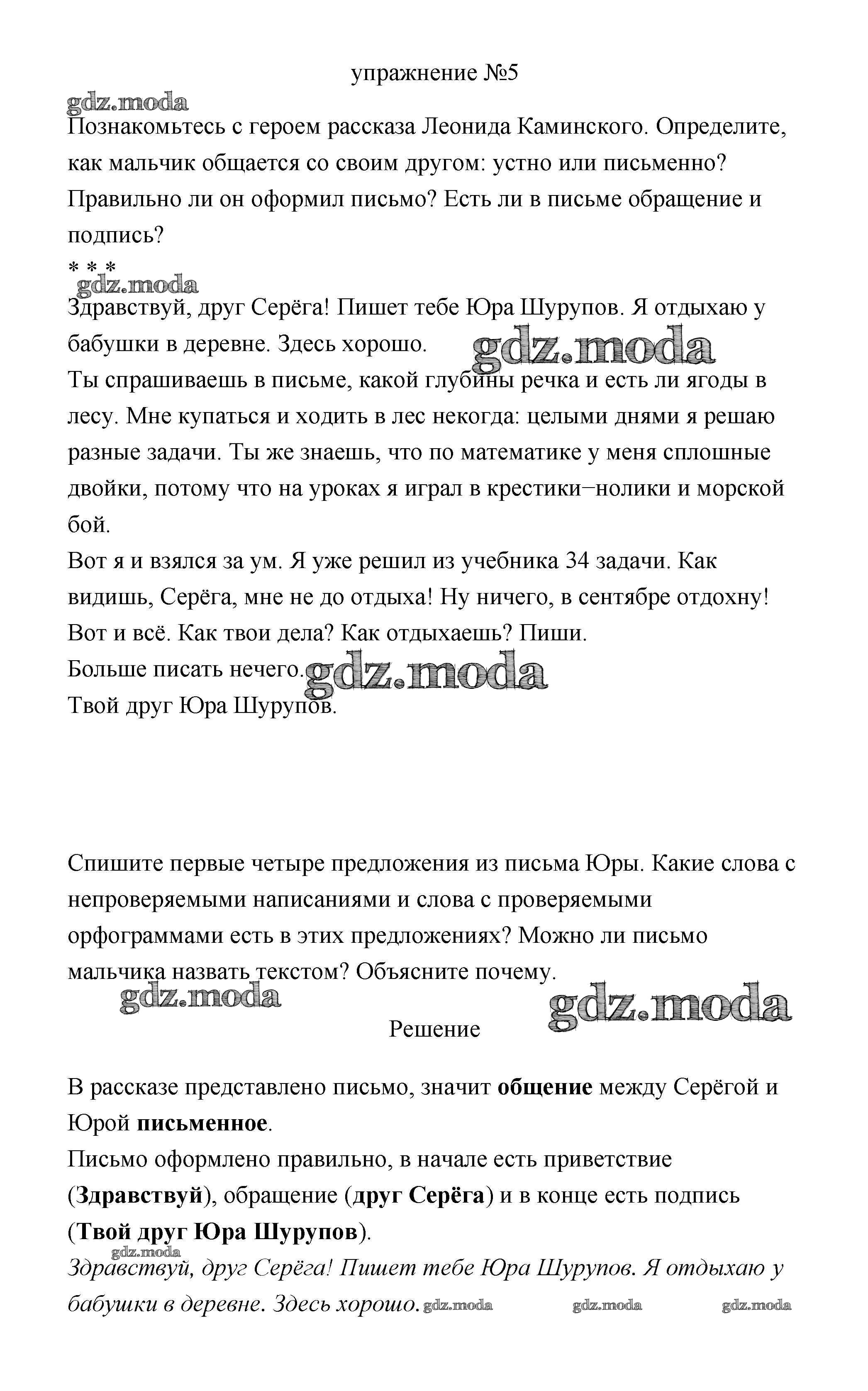ОТВЕТ на задание № 5 Учебник по Русскому языку 3 класс Климанова Перспектива