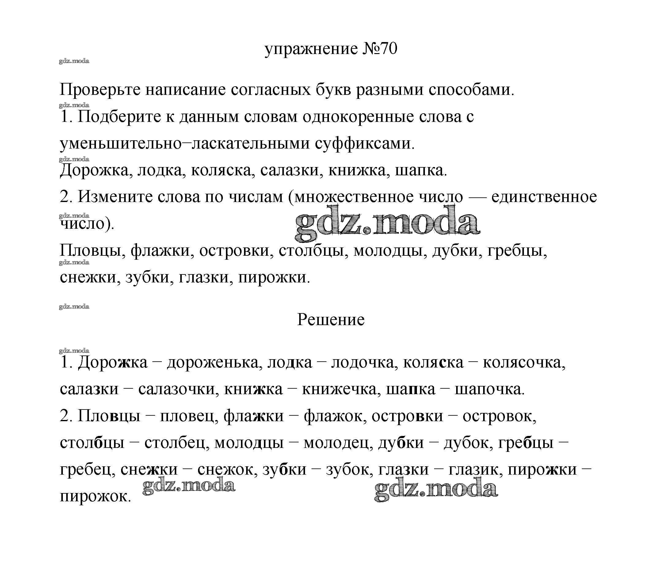 ОТВЕТ на задание № 70 Учебник по Русскому языку 3 класс Климанова Перспектива