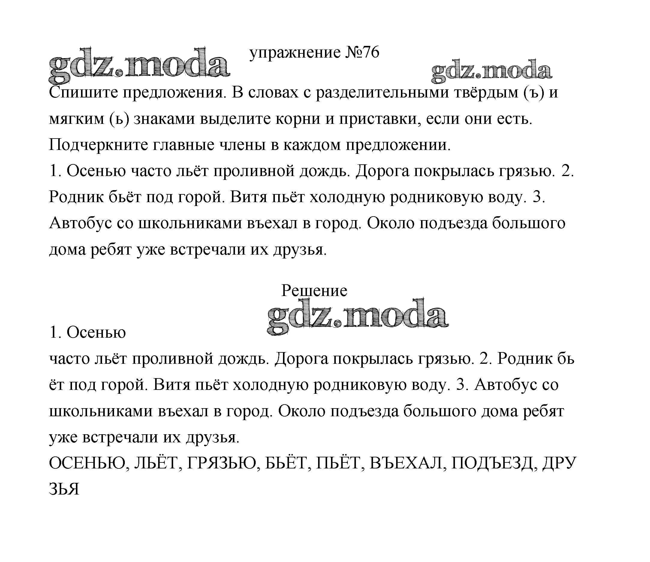 ОТВЕТ на задание № 76 Учебник по Русскому языку 3 класс Климанова Перспектива