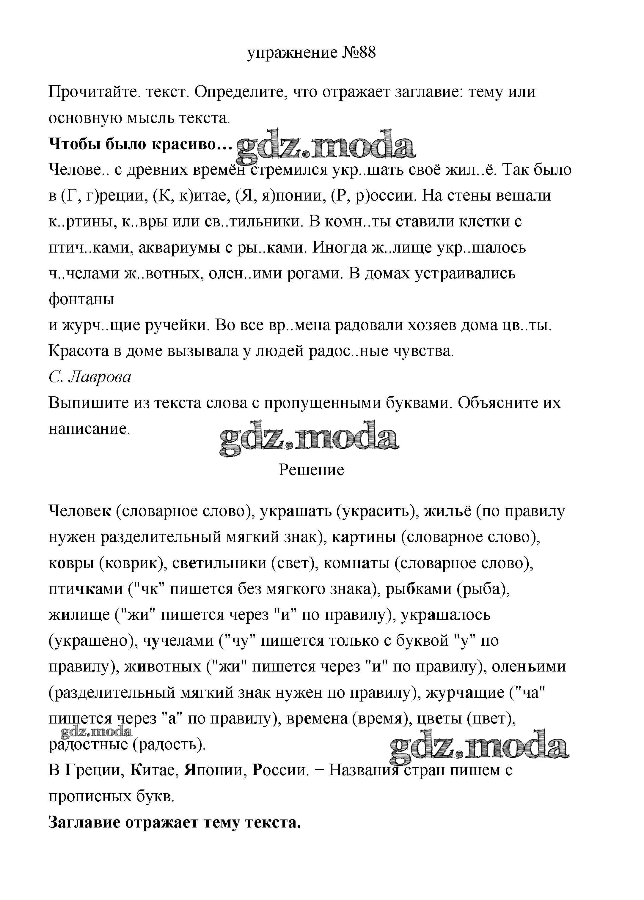 ОТВЕТ на задание № 88 Учебник по Русскому языку 3 класс Климанова Перспектива