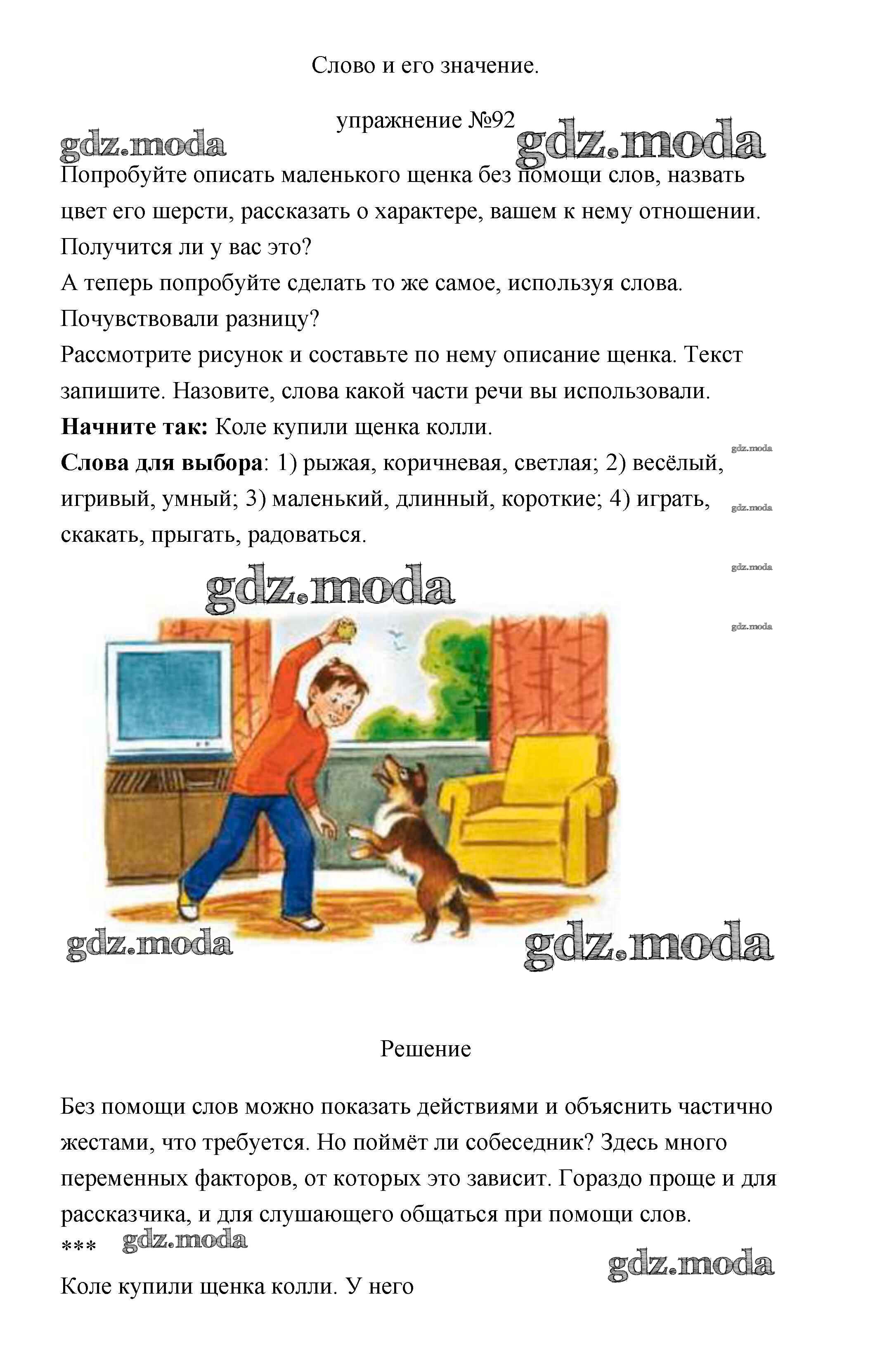 ОТВЕТ на задание № 92 Учебник по Русскому языку 3 класс Климанова Перспектива