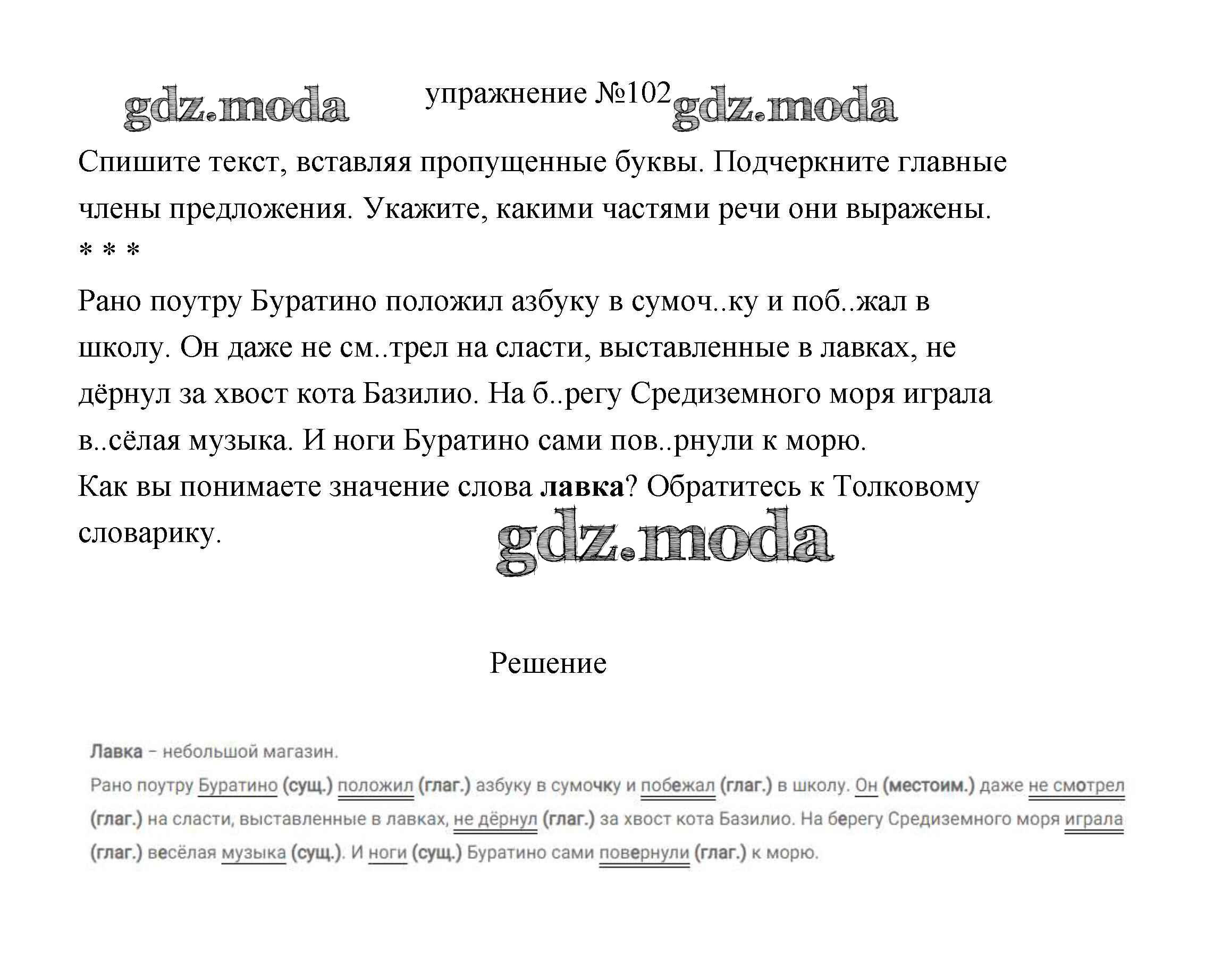 ОТВЕТ на задание № 102 Учебник по Русскому языку 3 класс Климанова Перспектива