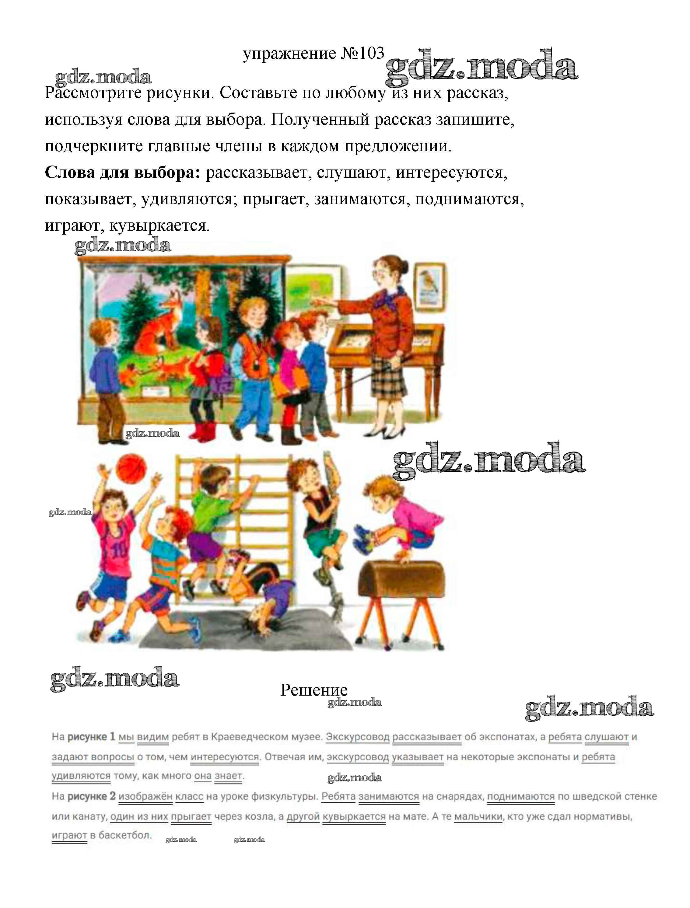 ГДЗ решение к заданию № 103 Русский язык 3 класс Климанова (учебник новый) Просвещение 2019 Часть 1, Часть 2 ФГОС бесплатно на гдз.мода!