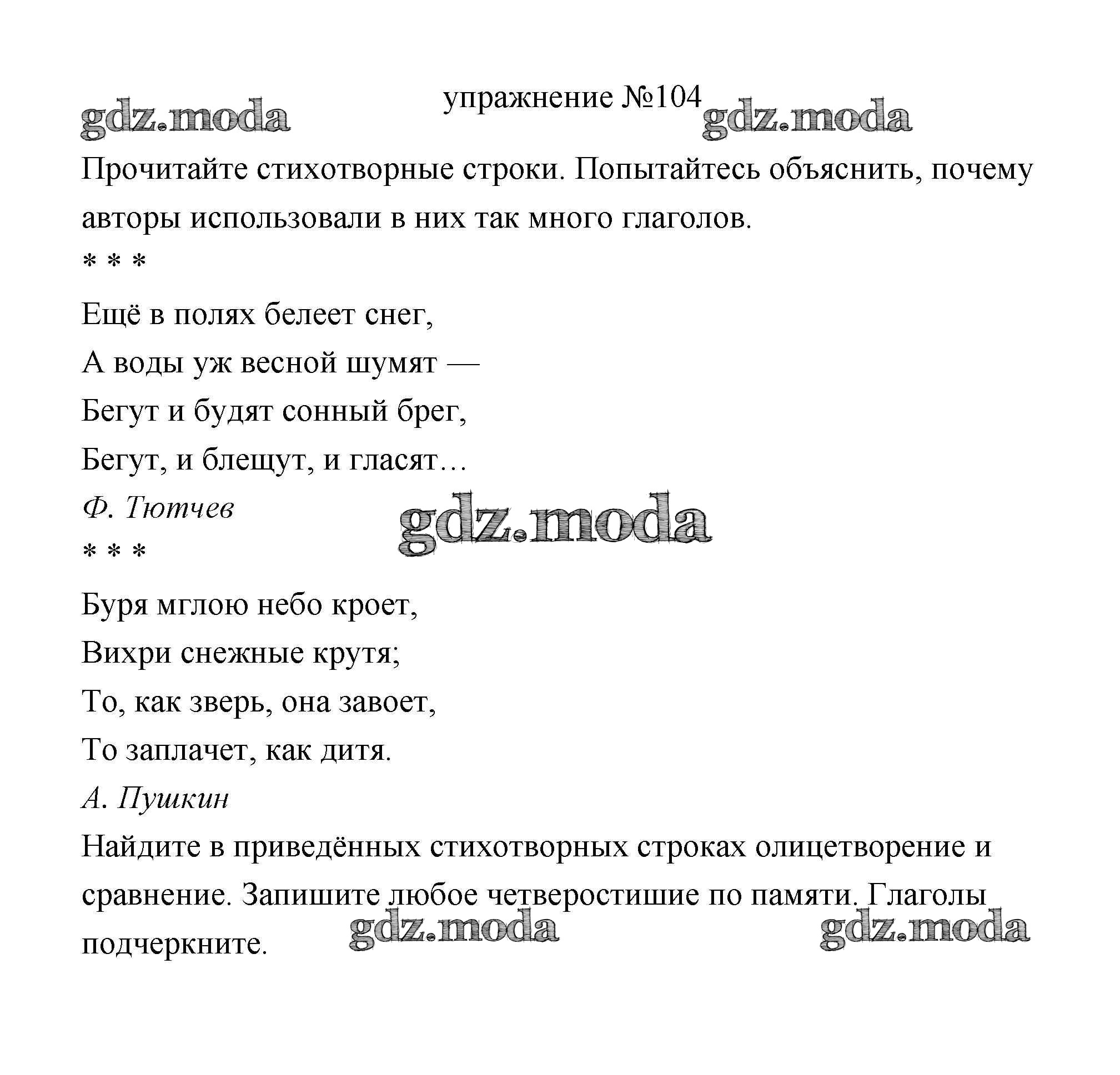 ОТВЕТ на задание № 104 Учебник по Русскому языку 3 класс Климанова Перспектива