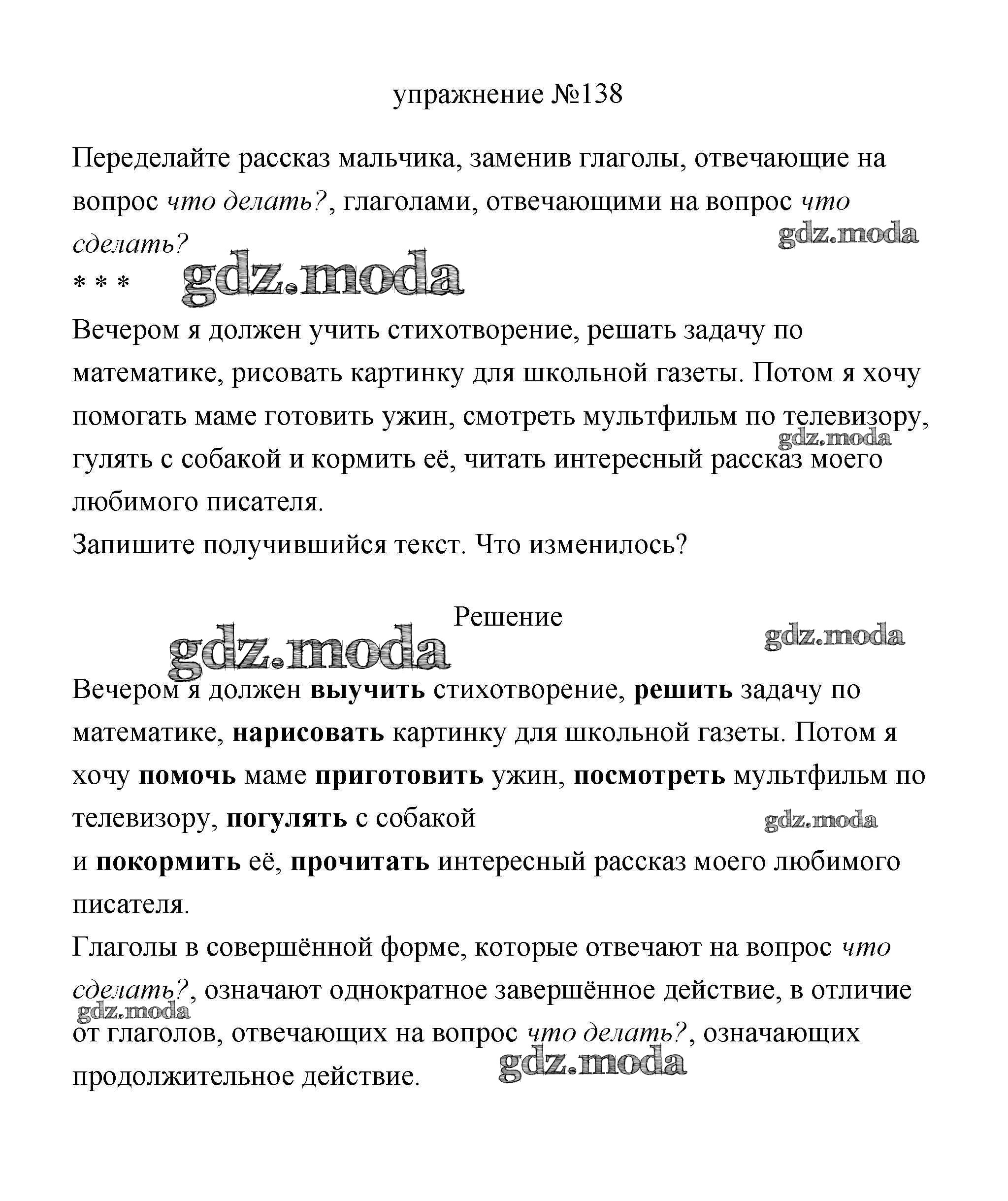 ОТВЕТ на задание № 138 Учебник по Русскому языку 3 класс Климанова Перспектива