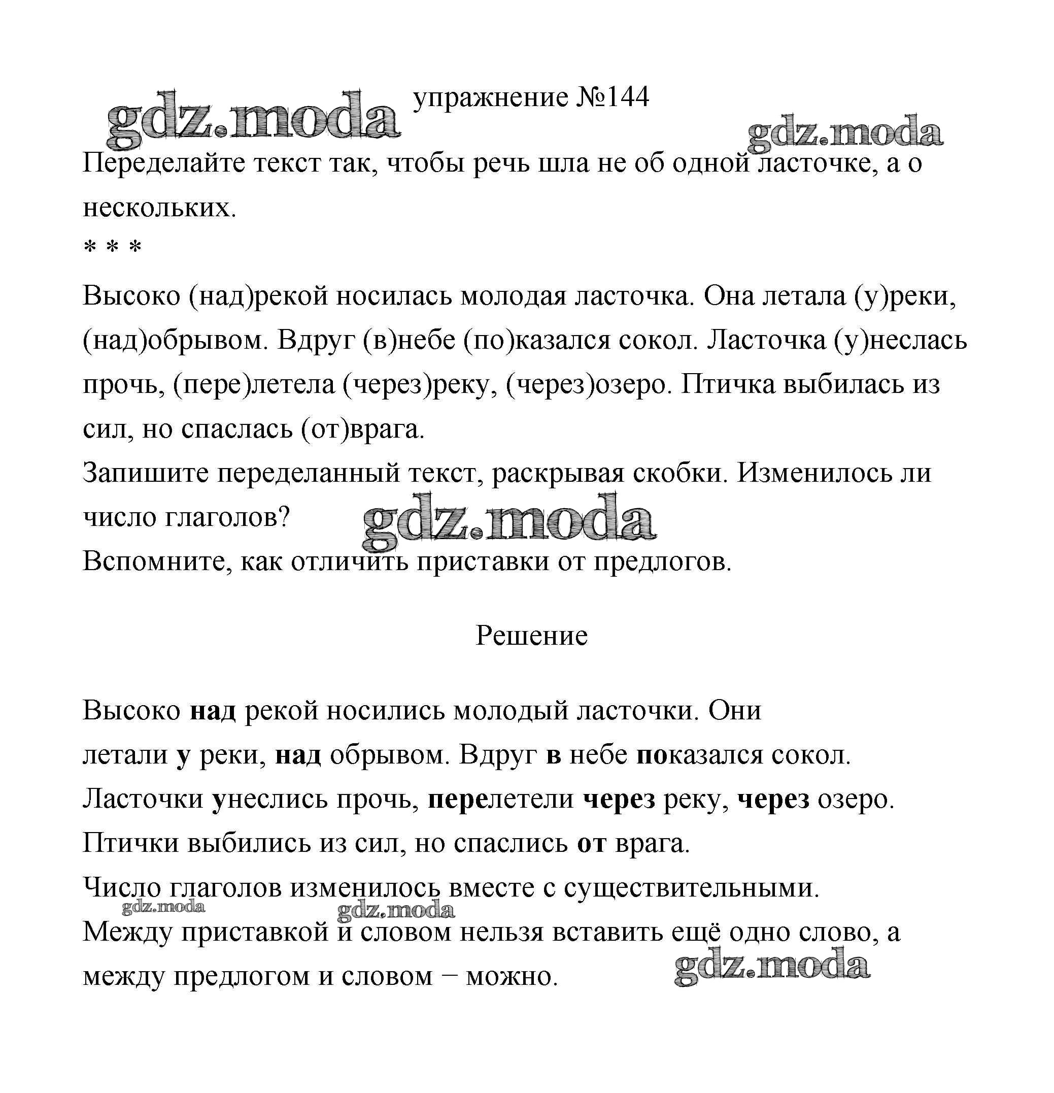 ОТВЕТ на задание № 144 Учебник по Русскому языку 3 класс Климанова Перспектива