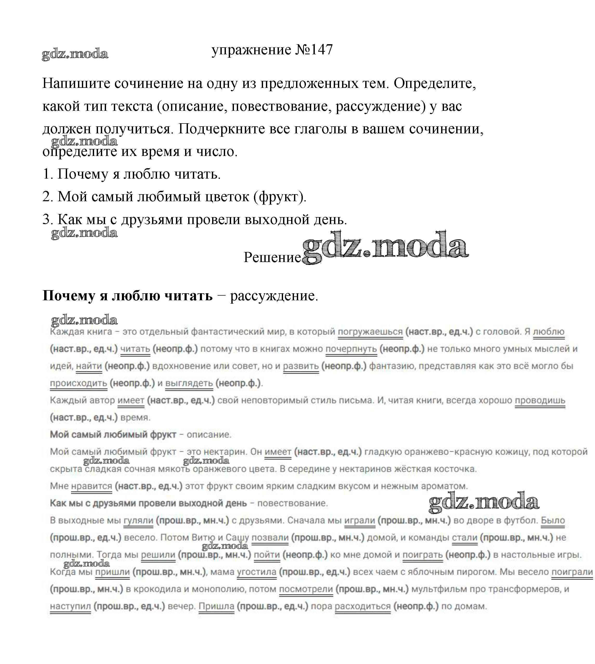 ОТВЕТ на задание № 147 Учебник по Русскому языку 3 класс Климанова Перспектива