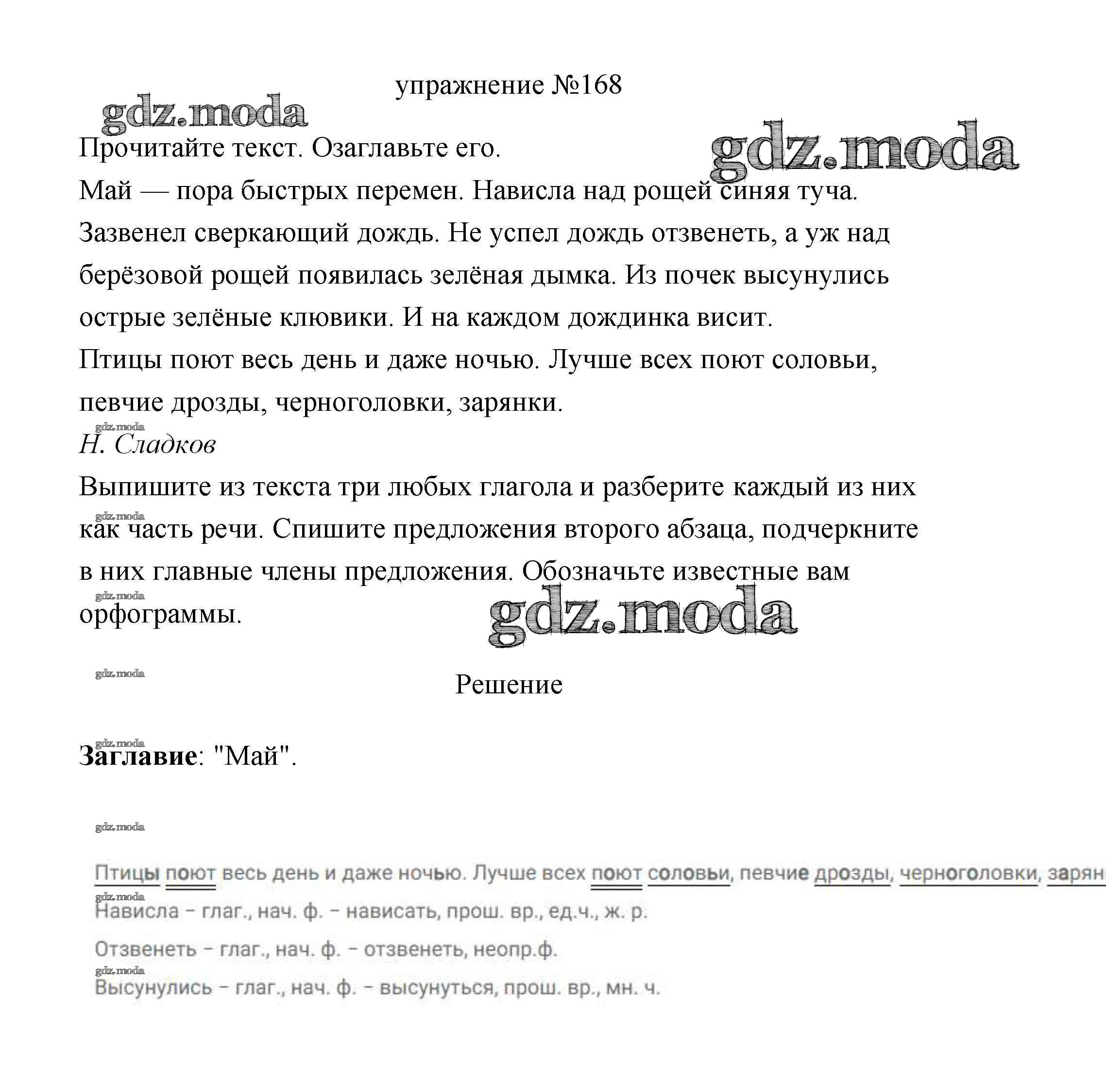 ОТВЕТ на задание № 168 Учебник по Русскому языку 3 класс Климанова Перспектива