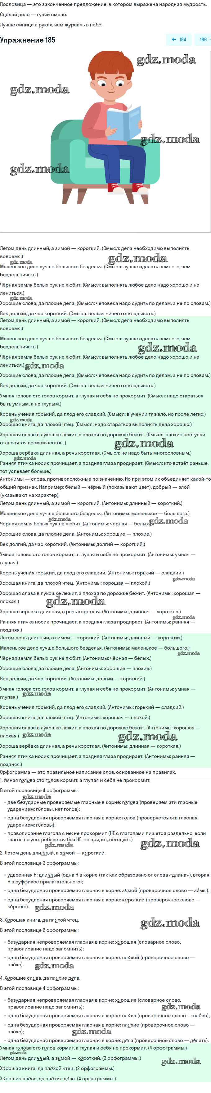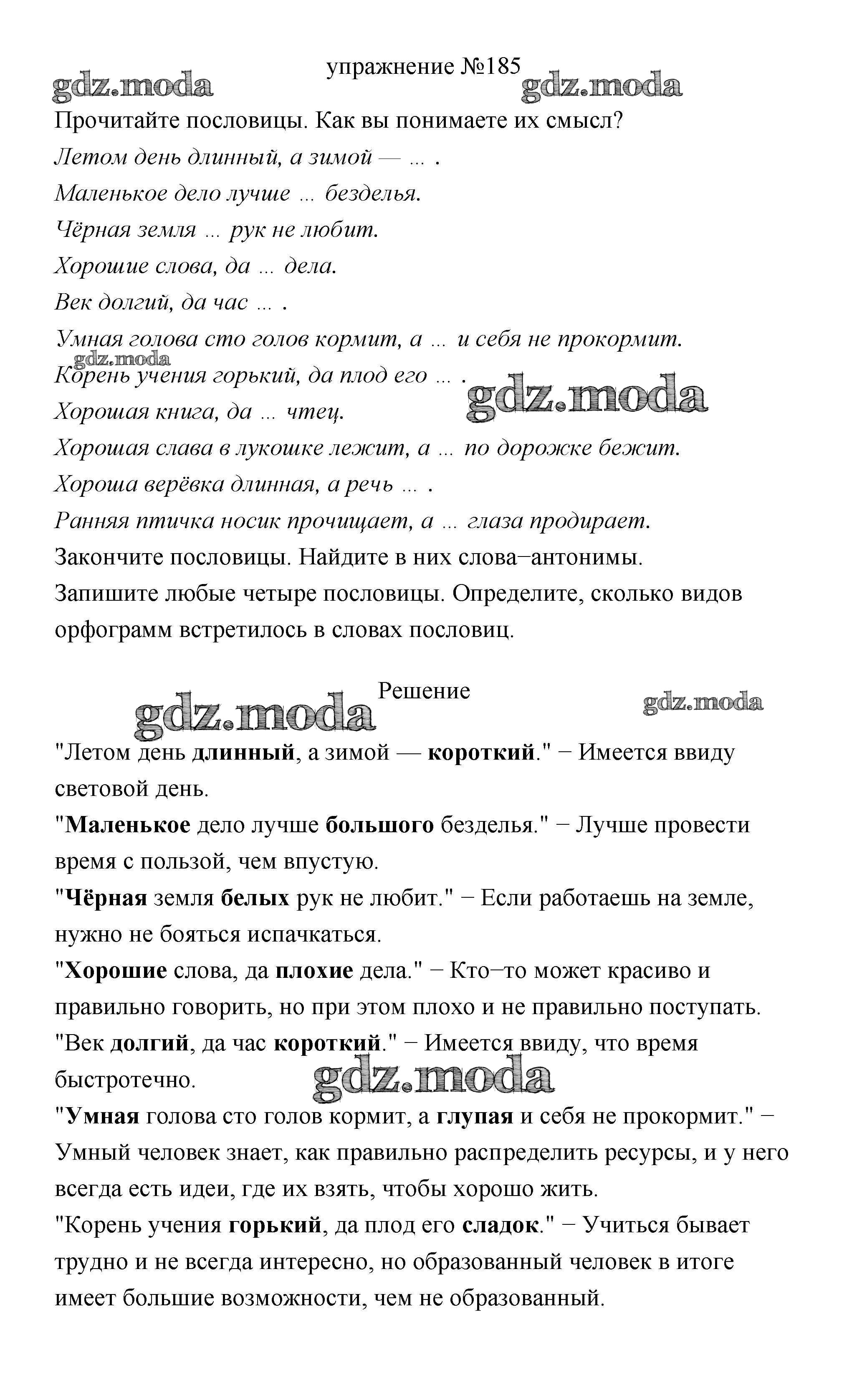 ОТВЕТ на задание № 185 Учебник по Русскому языку 3 класс Климанова Перспектива