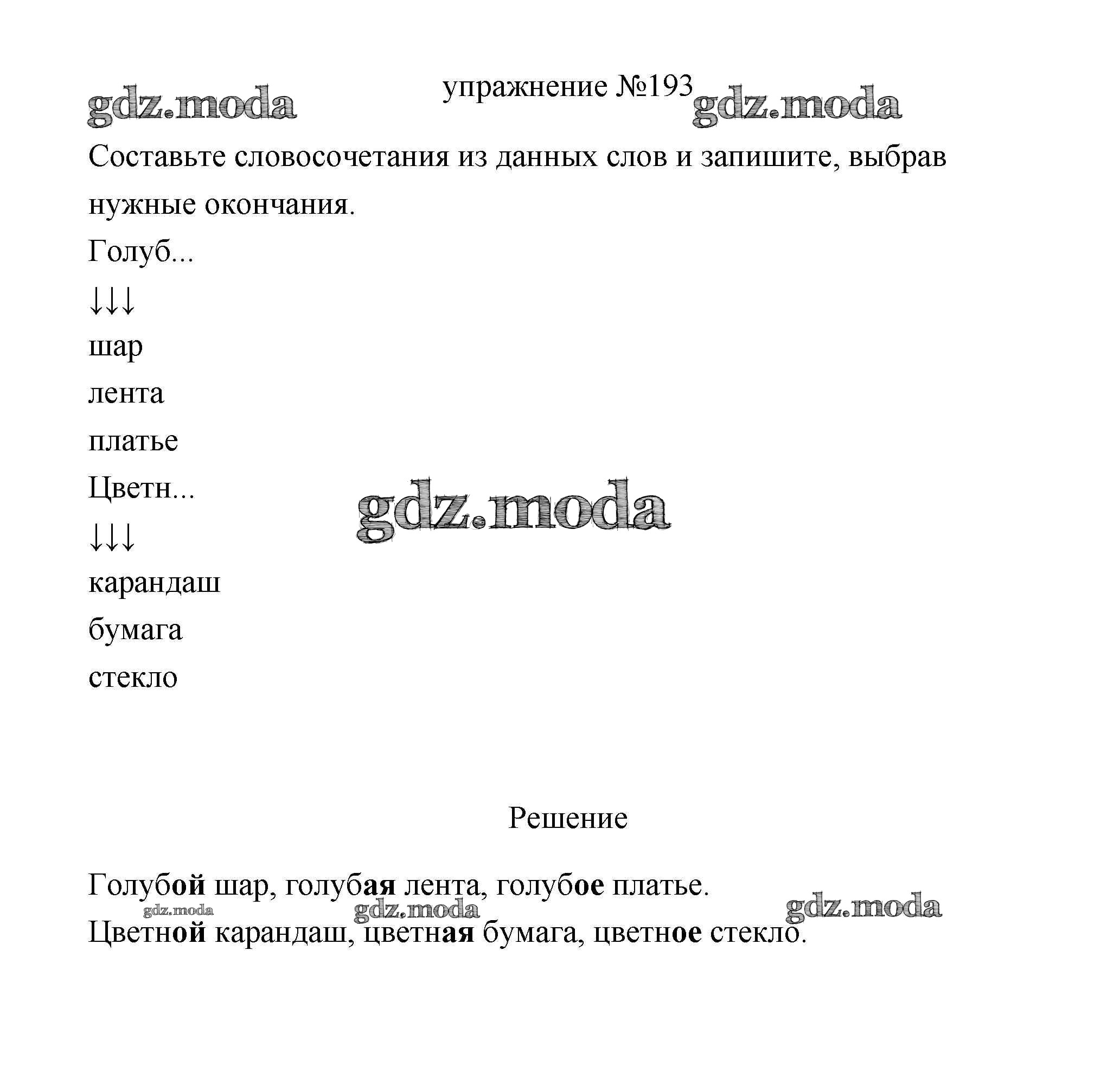 ОТВЕТ на задание № 193 Учебник по Русскому языку 3 класс Климанова Перспектива
