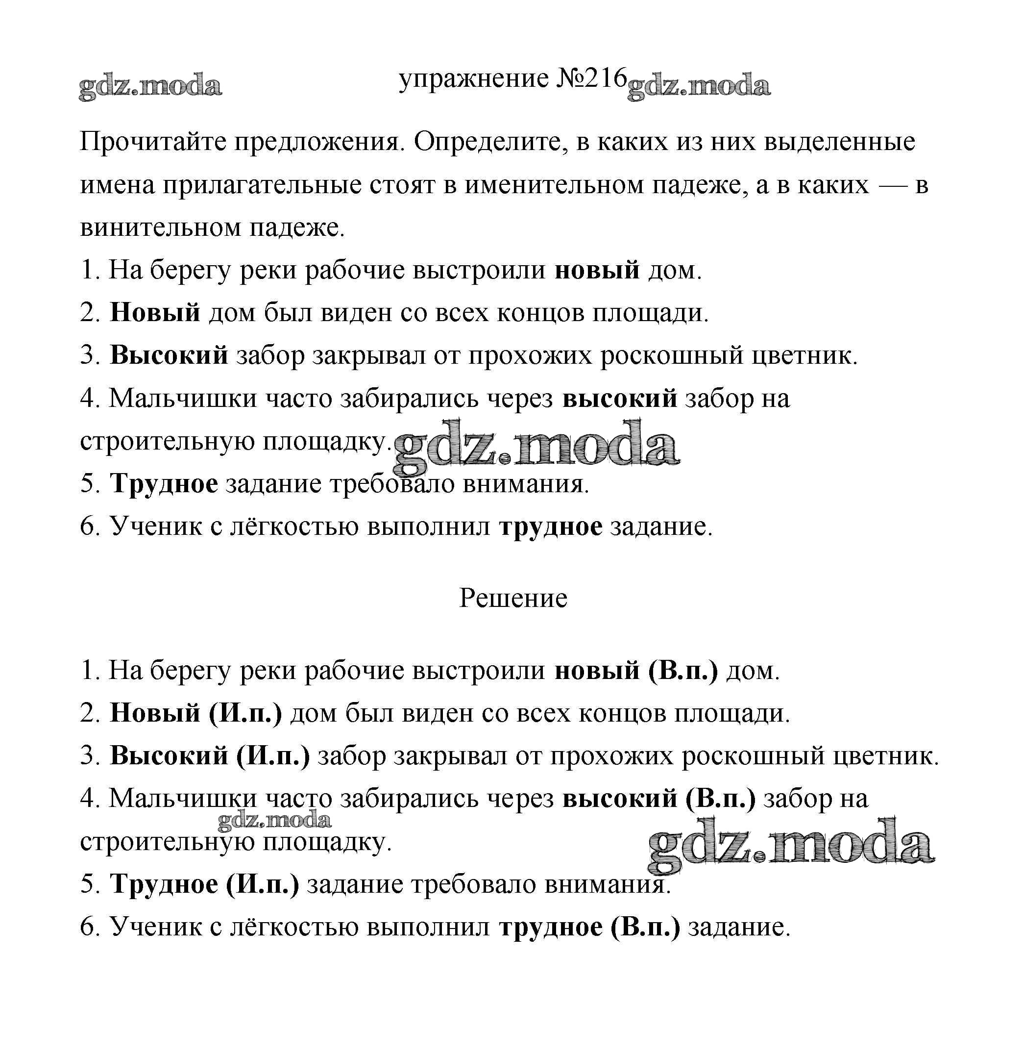 ОТВЕТ на задание № 216 Учебник по Русскому языку 3 класс Климанова Перспектива