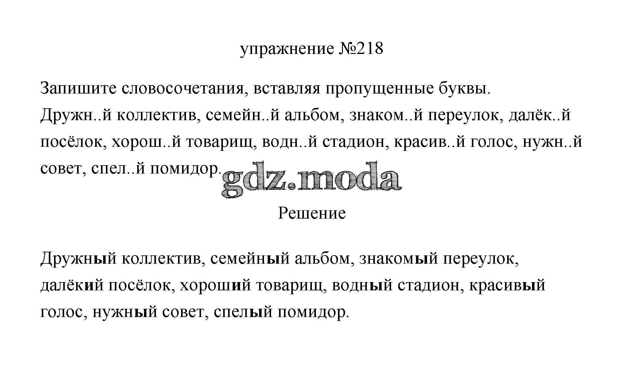 ОТВЕТ на задание № 218 Учебник по Русскому языку 3 класс Климанова Перспектива