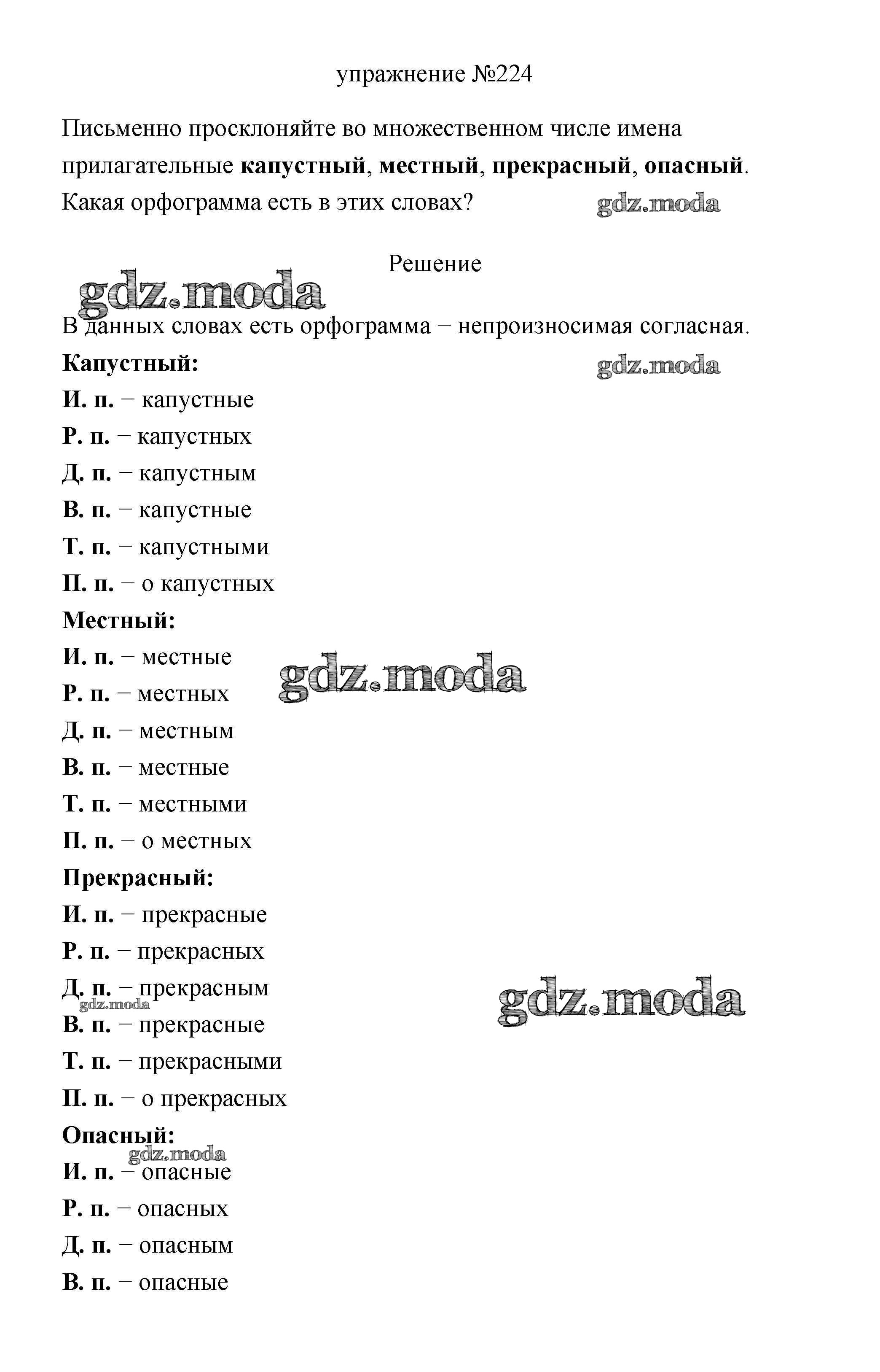 ОТВЕТ на задание № 224 Учебник по Русскому языку 3 класс Климанова Перспектива