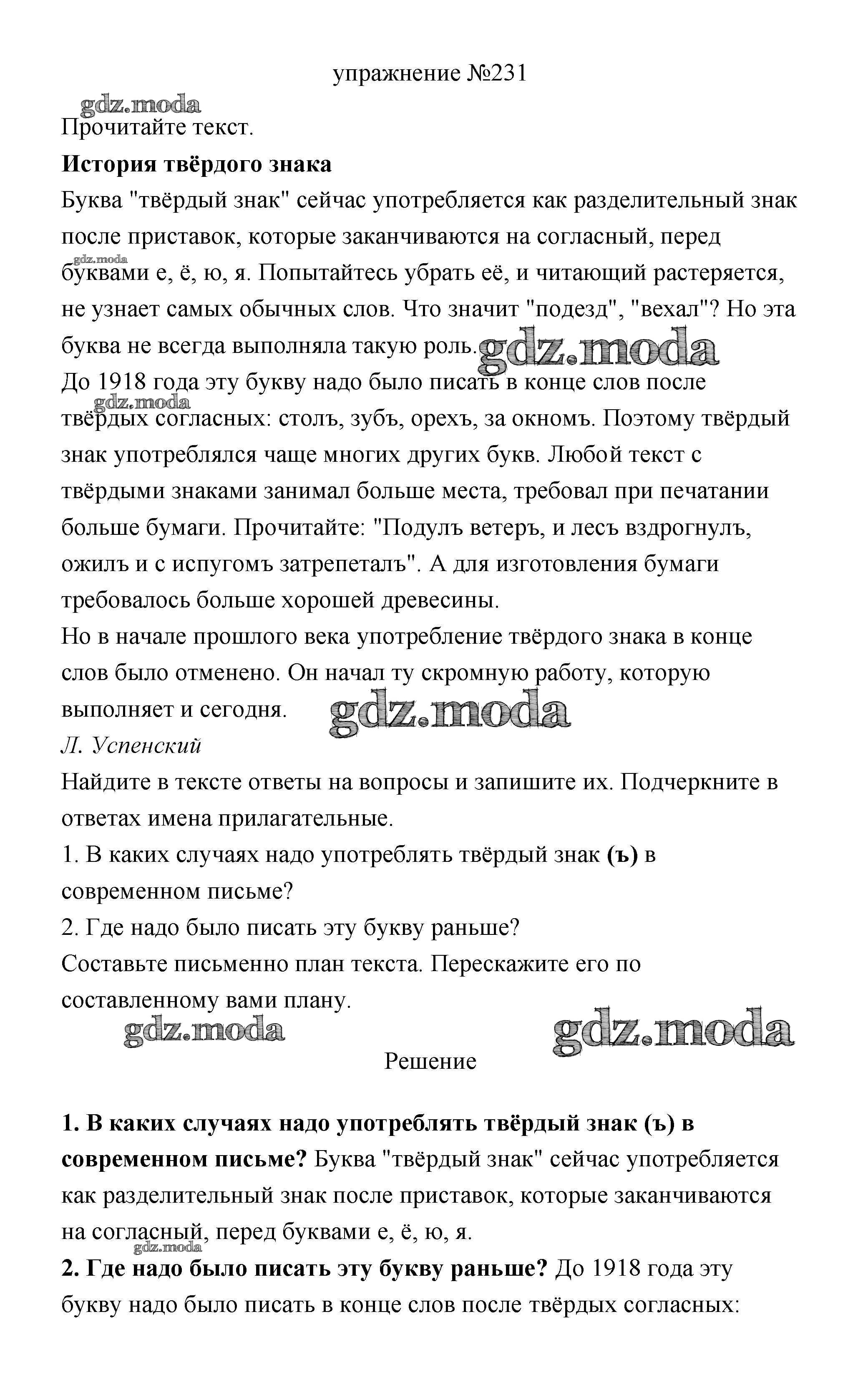 ОТВЕТ на задание № 231 Учебник по Русскому языку 3 класс Климанова Перспектива