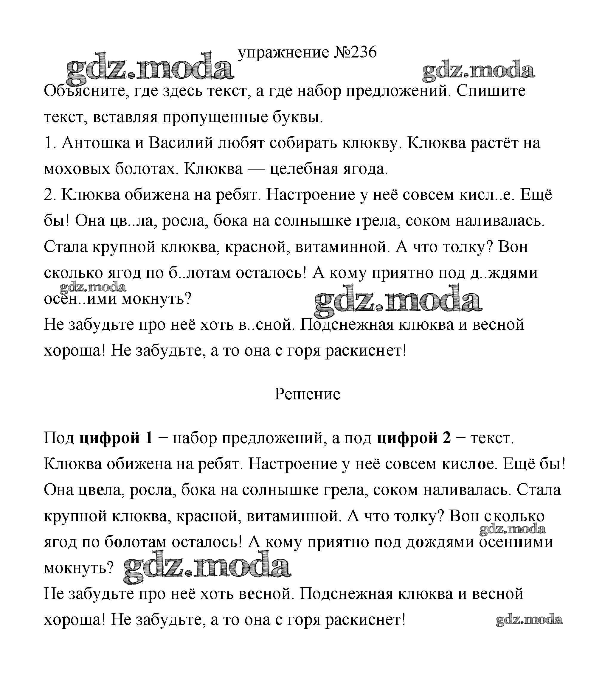 ОТВЕТ на задание № 236 Учебник по Русскому языку 3 класс Климанова Перспектива