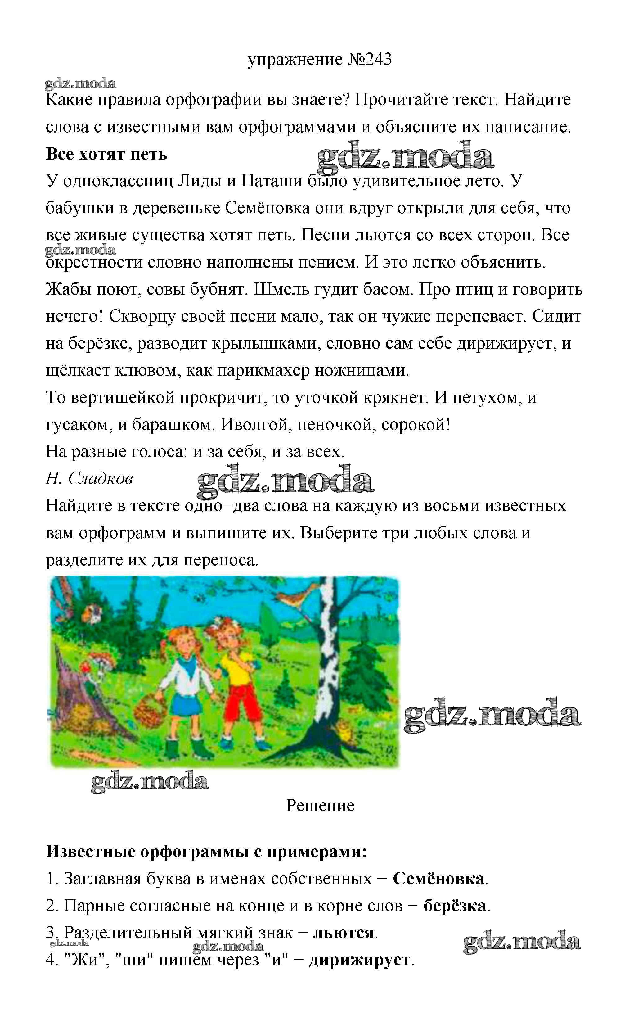 ОТВЕТ на задание № 243 Учебник по Русскому языку 3 класс Климанова Перспектива