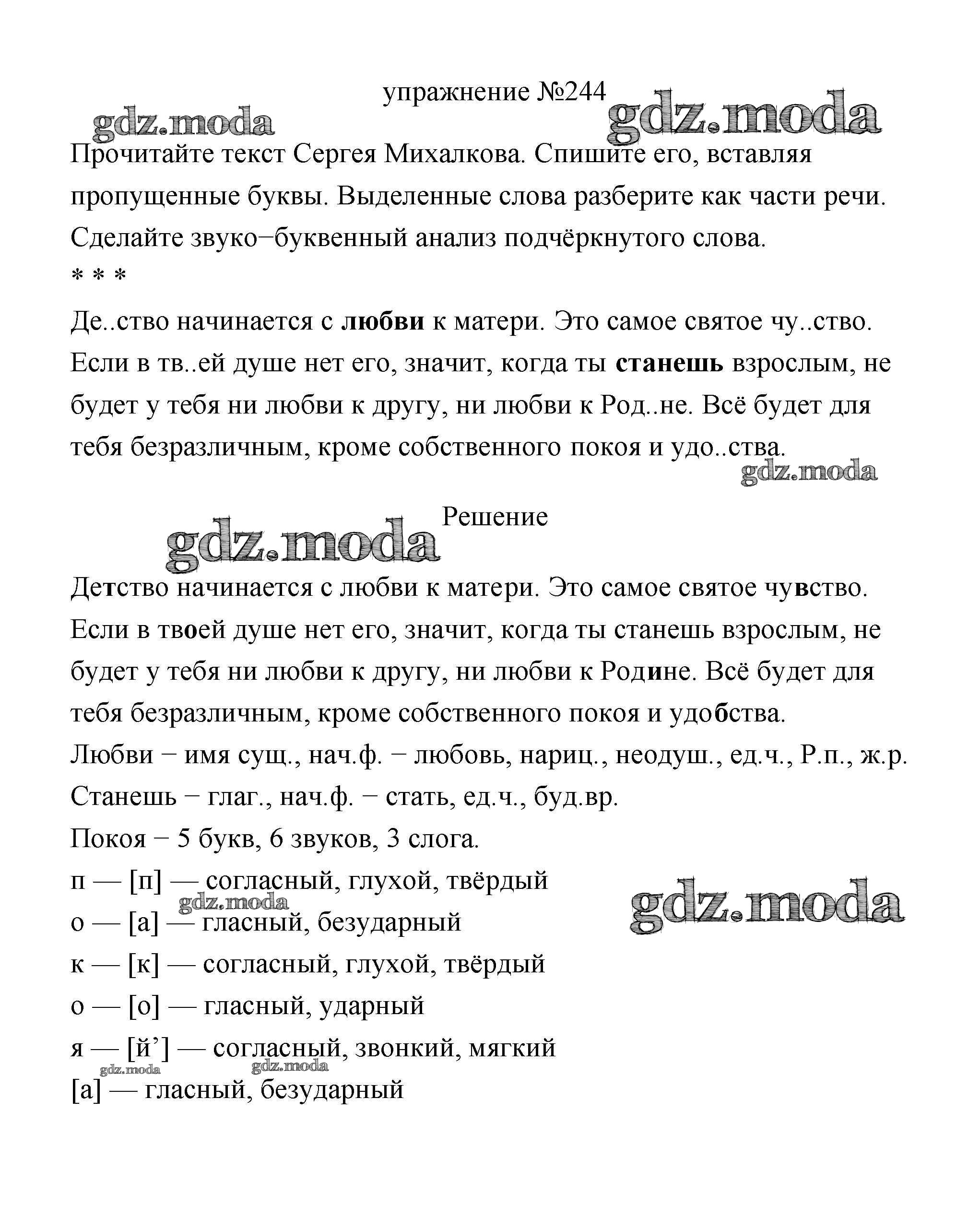 ОТВЕТ на задание № 244 Учебник по Русскому языку 3 класс Климанова Перспектива