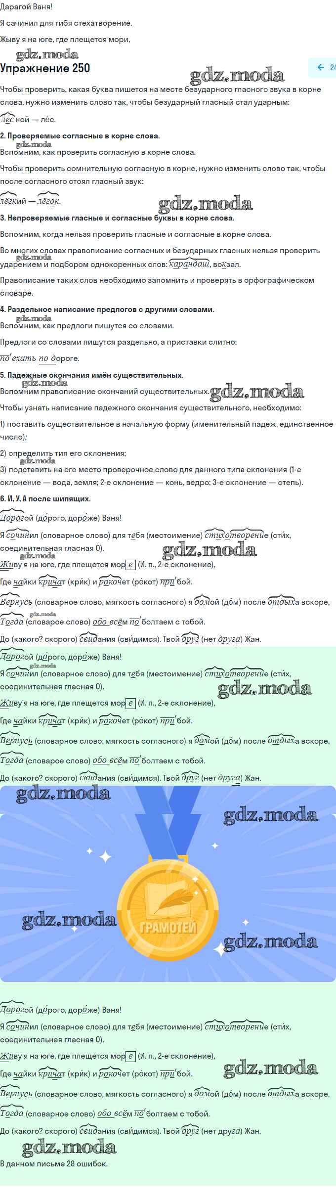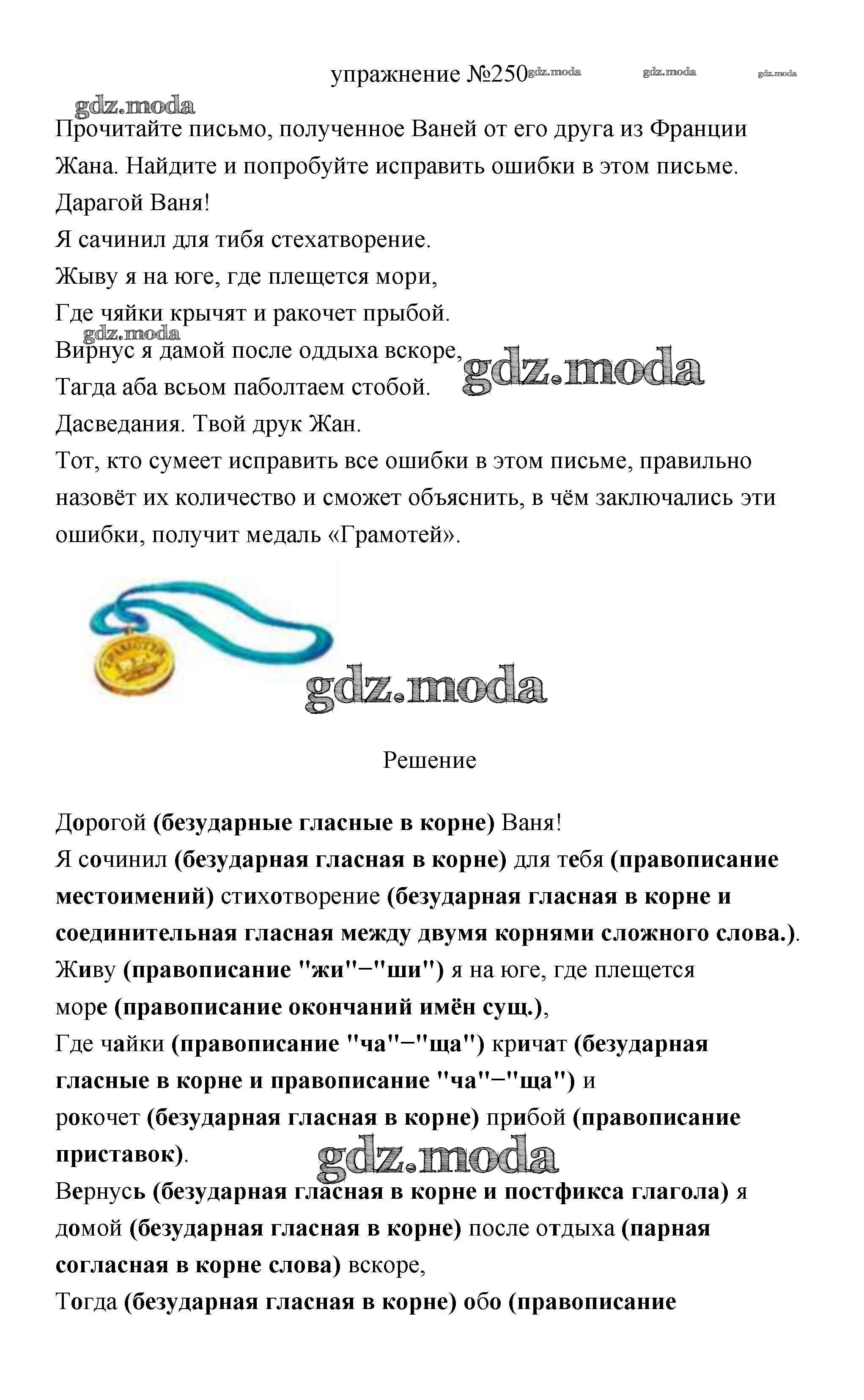 ОТВЕТ на задание № 250 Учебник по Русскому языку 3 класс Климанова Перспектива