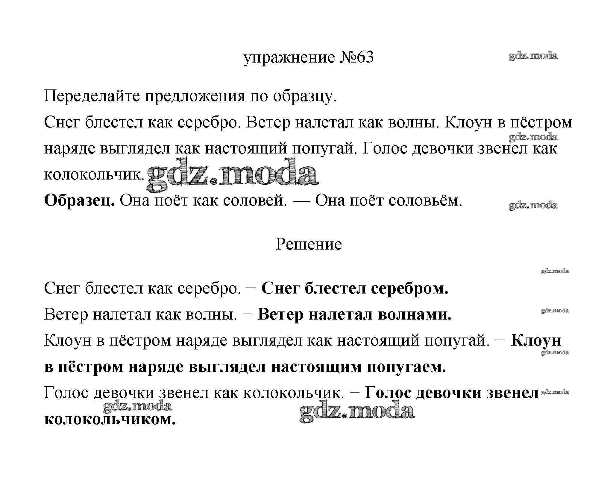 ОТВЕТ на задание № 63 Учебник по Русскому языку 3 класс Климанова Перспектива