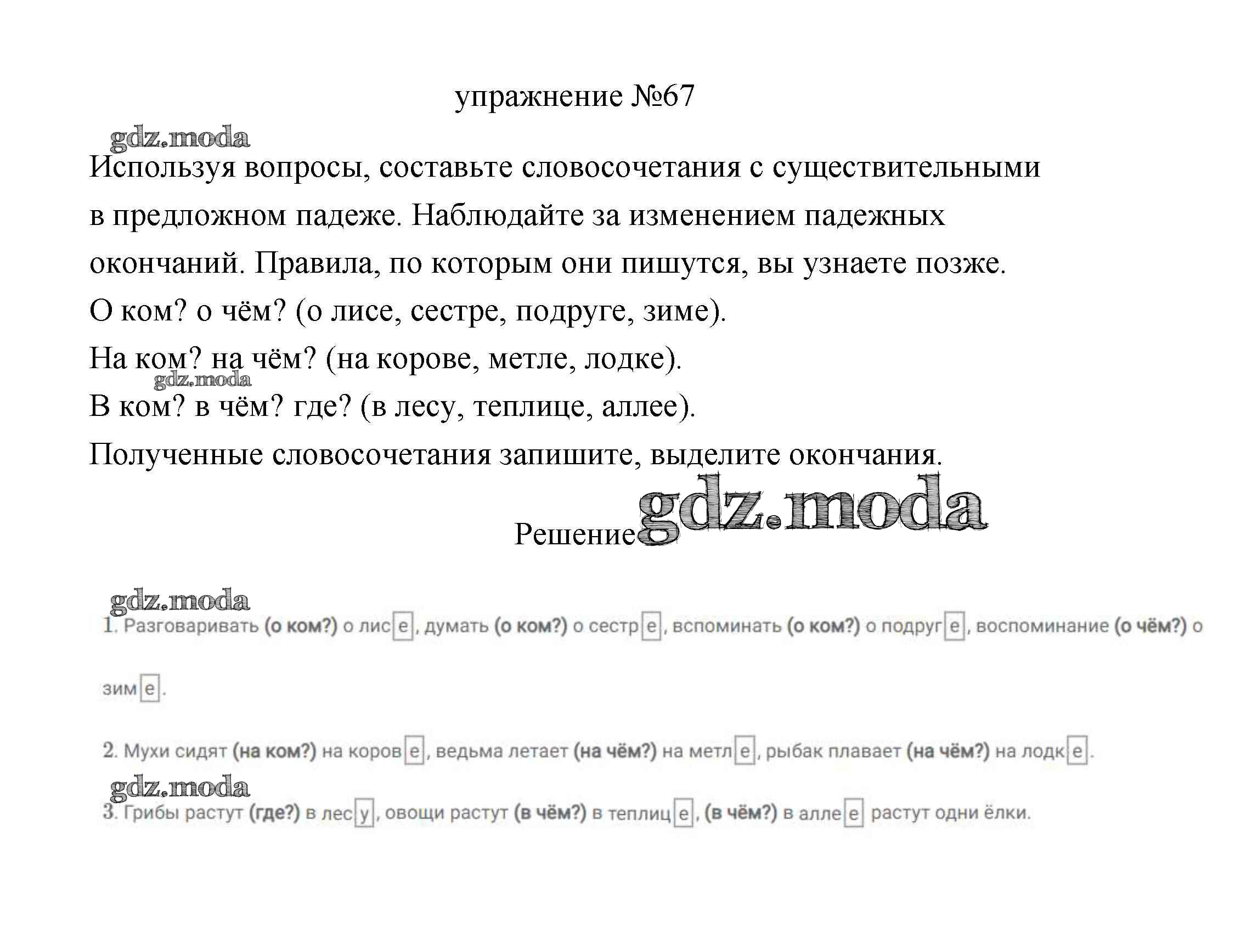ОТВЕТ на задание № 67 Учебник по Русскому языку 3 класс Климанова Перспектива