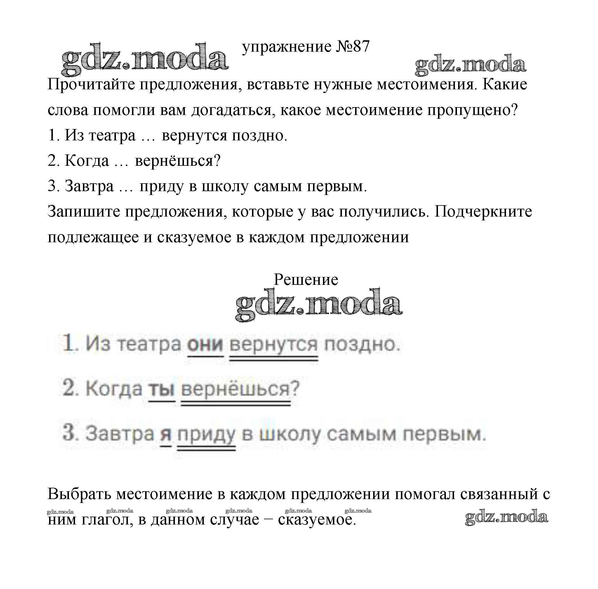 ОТВЕТ на задание № 87 Учебник по Русскому языку 3 класс Климанова Перспектива