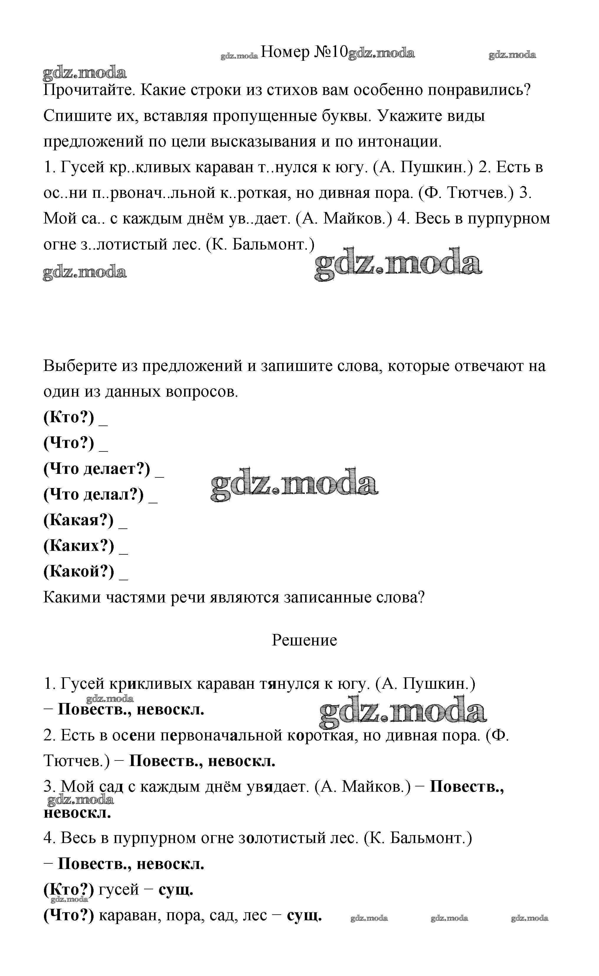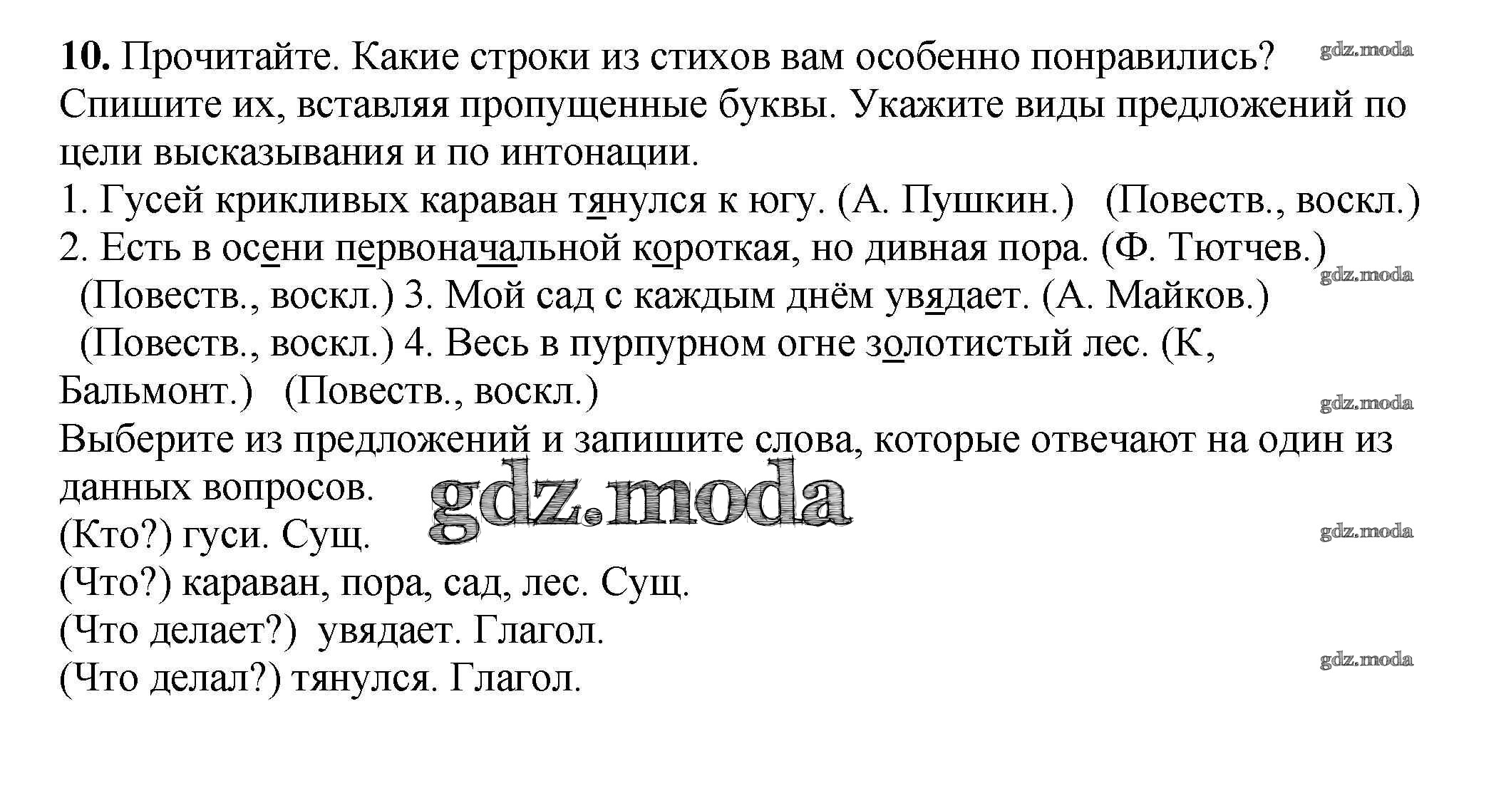 ОТВЕТ на задание № 10 Рабочая тетрадь по Русскому языку 3 класс Климанова Перспектива