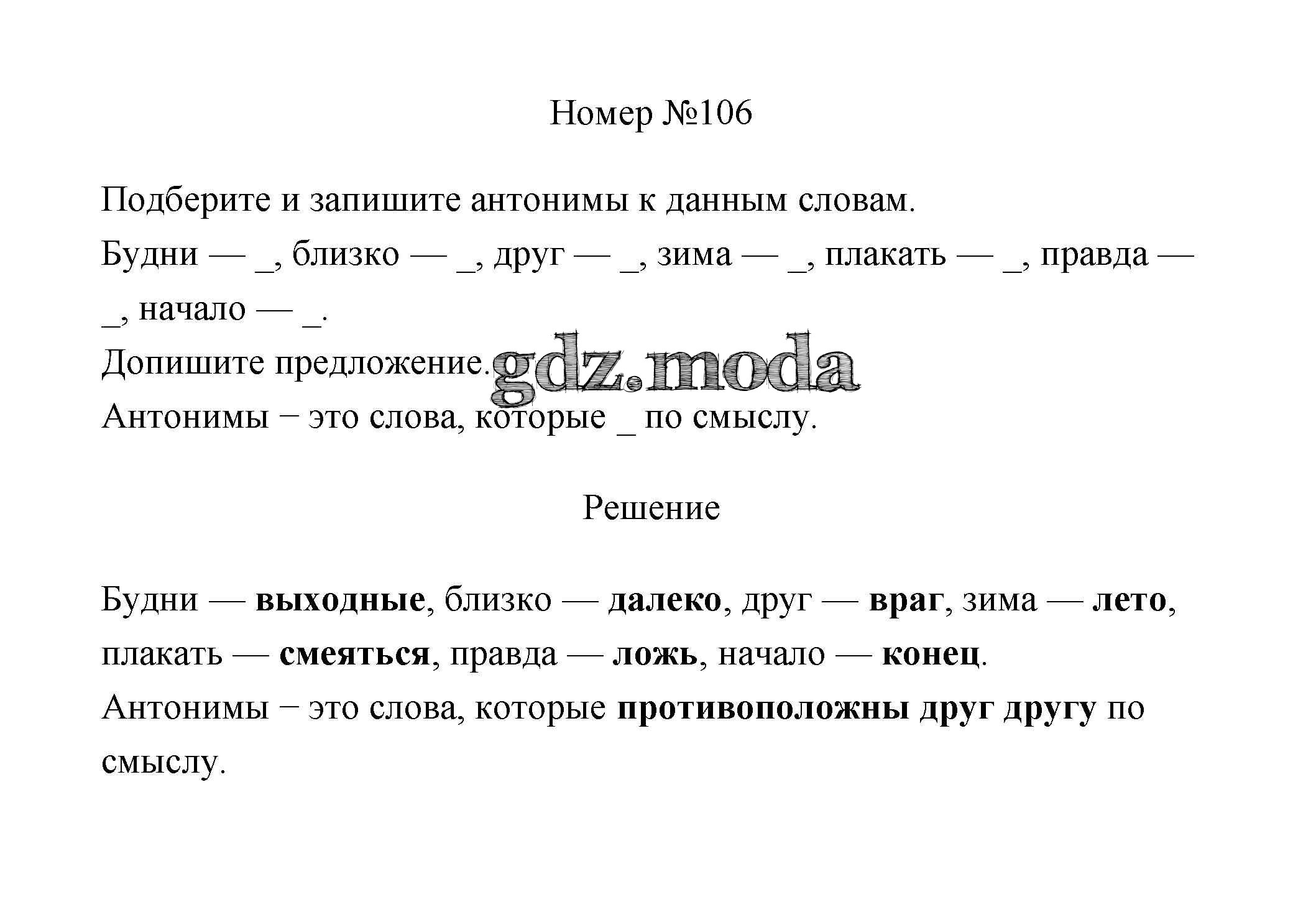 ОТВЕТ на задание № 106 Рабочая тетрадь по Русскому языку 3 класс Климанова Перспектива