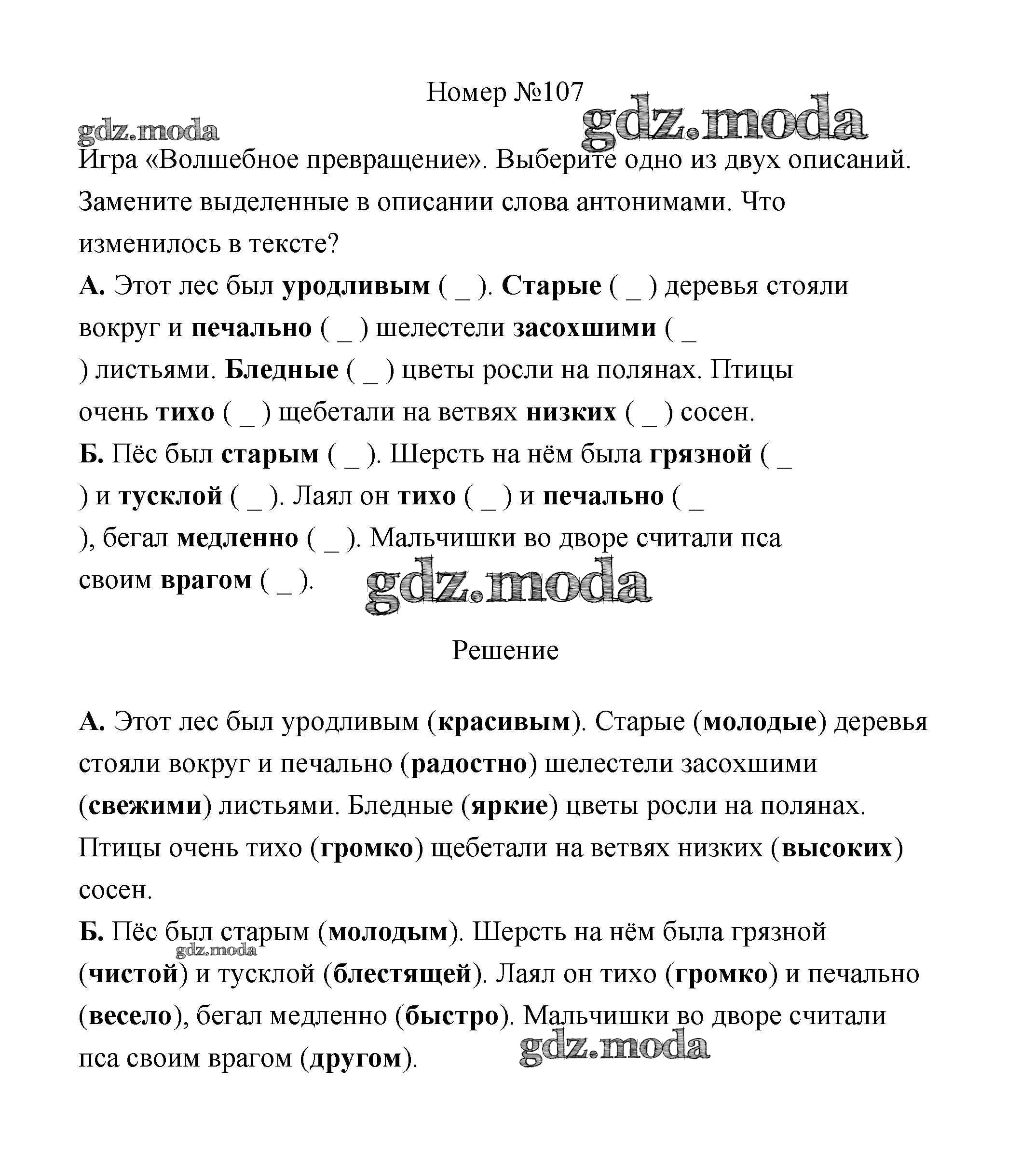 ОТВЕТ на задание № 107 Рабочая тетрадь по Русскому языку 3 класс Климанова Перспектива