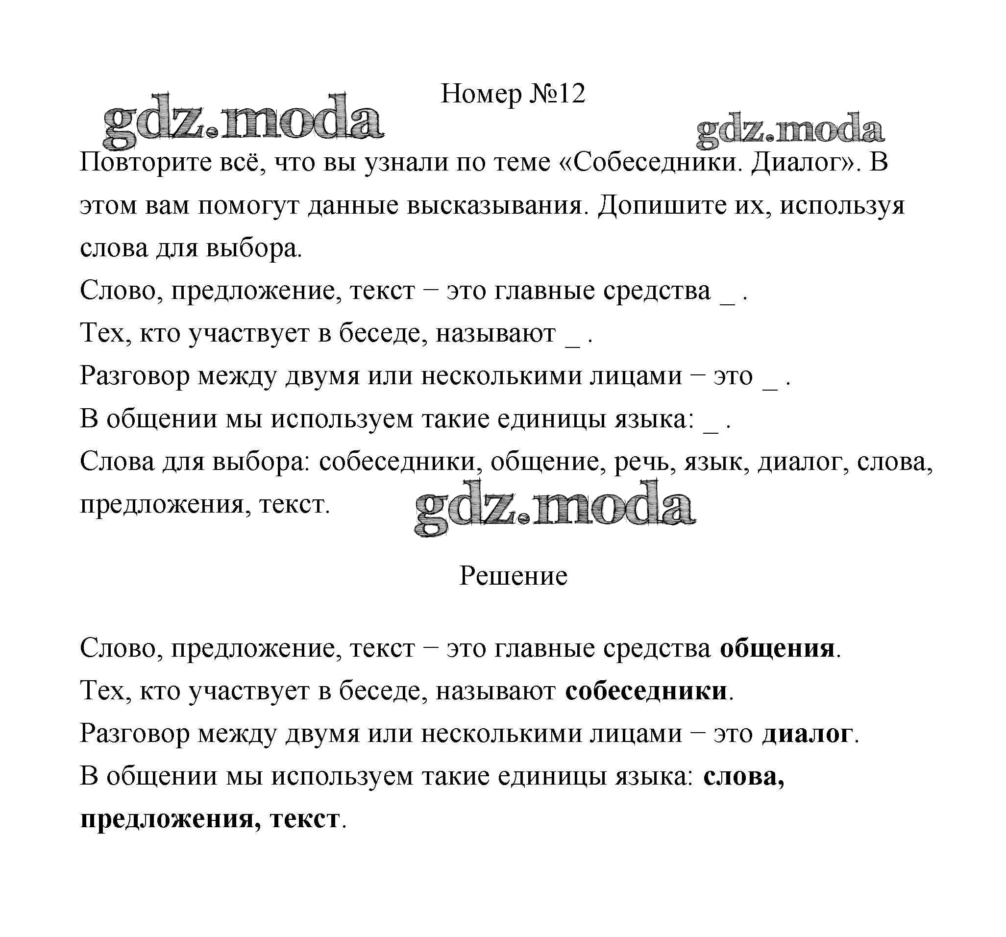 ОТВЕТ на задание № 12 Рабочая тетрадь по Русскому языку 3 класс Климанова Перспектива
