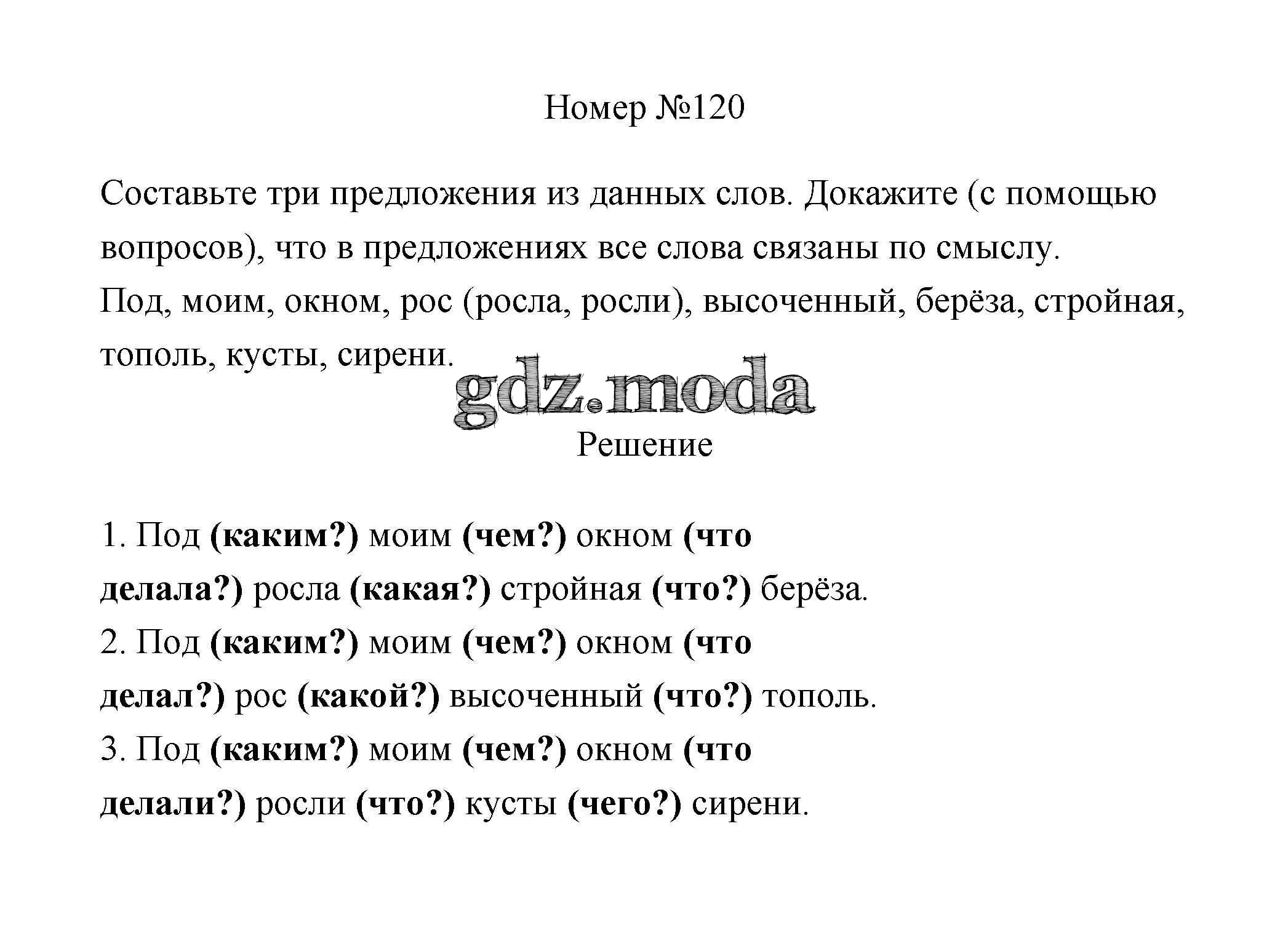 ОТВЕТ на задание № 120 Рабочая тетрадь по Русскому языку 3 класс Климанова Перспектива