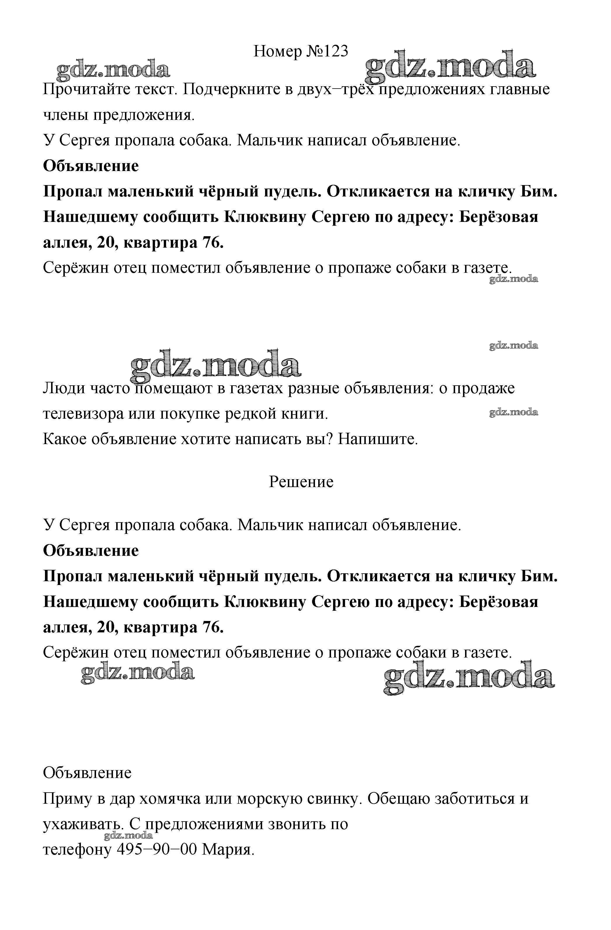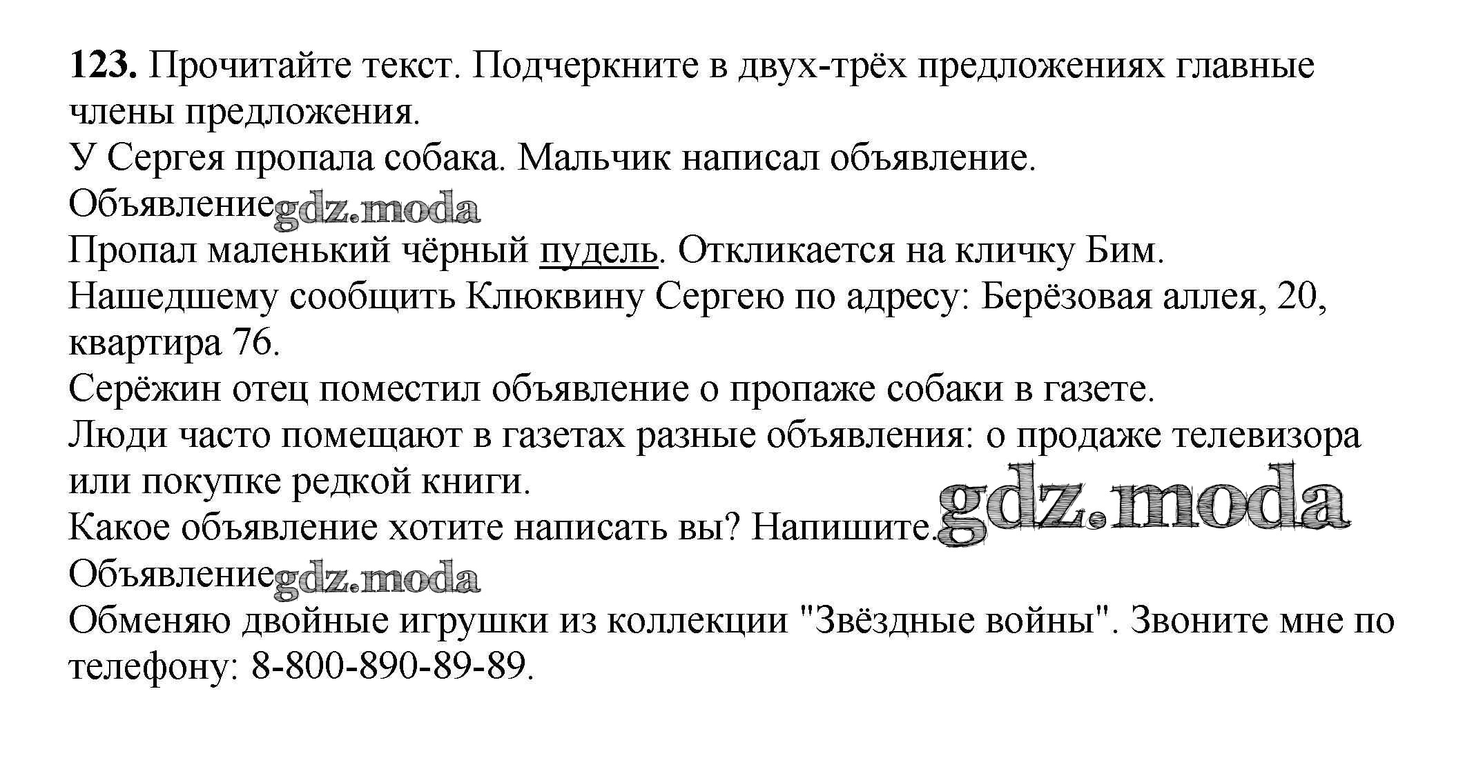 ОТВЕТ на задание № 123 Рабочая тетрадь по Русскому языку 3 класс Климанова Перспектива