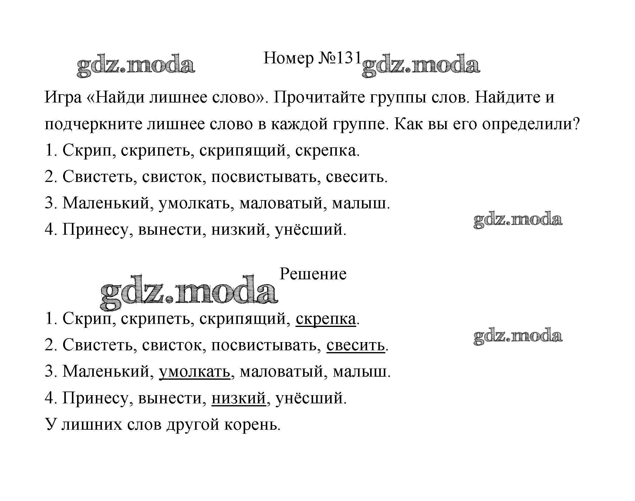 ОТВЕТ на задание № 131 Рабочая тетрадь по Русскому языку 3 класс Климанова Перспектива
