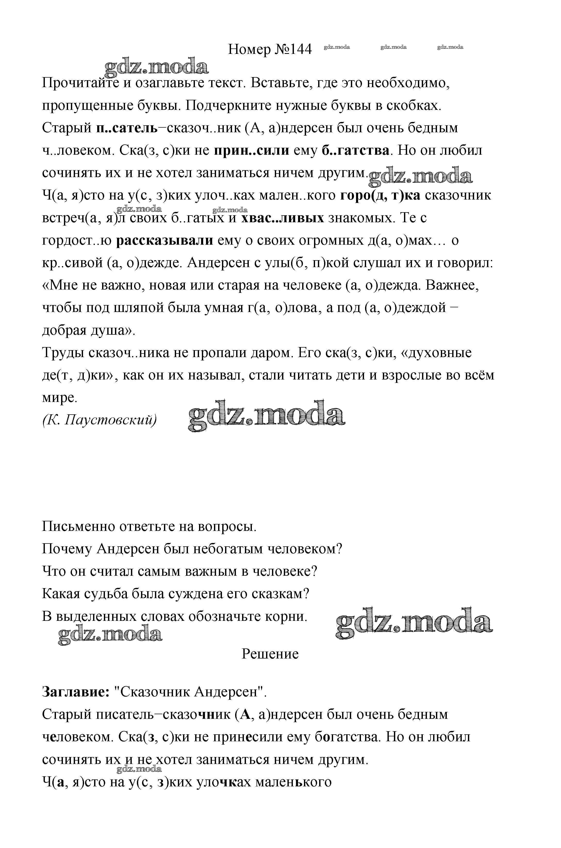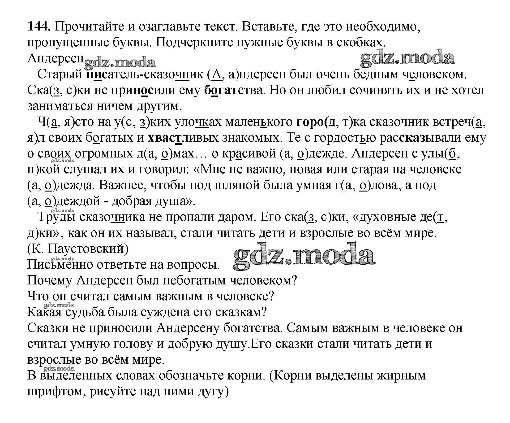 ОТВЕТ на задание № 144 Рабочая тетрадь по Русскому языку 3 класс Климанова Перспектива