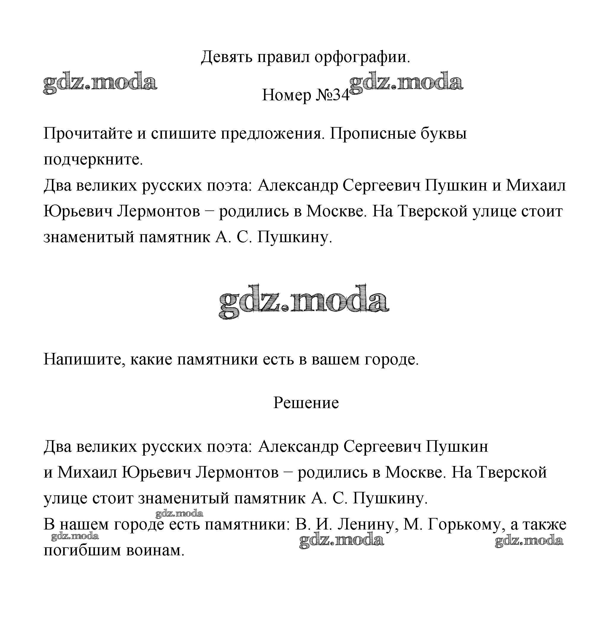 ОТВЕТ на задание № 34 Рабочая тетрадь по Русскому языку 3 класс Климанова Перспектива