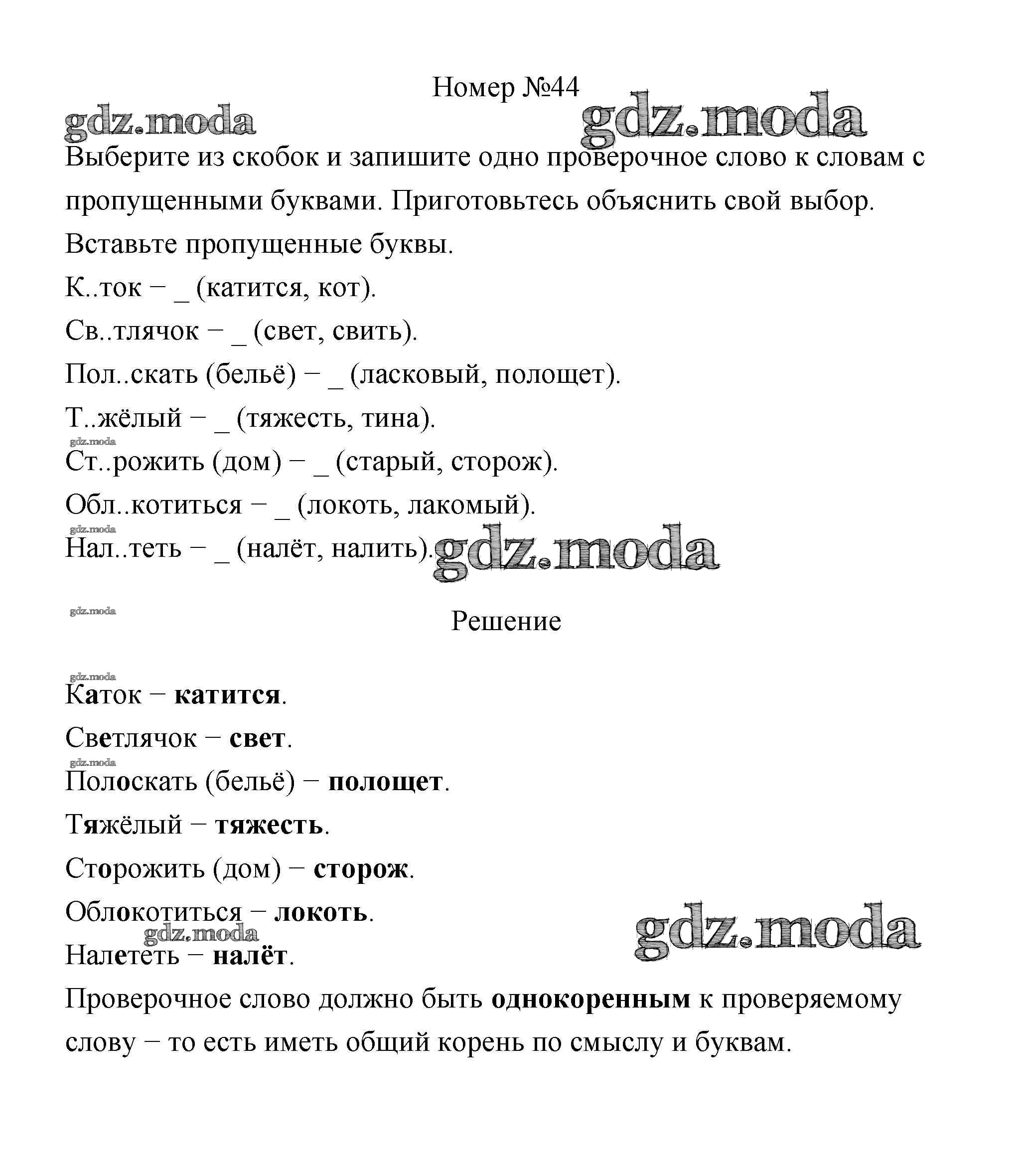 ОТВЕТ на задание № 44 Рабочая тетрадь по Русскому языку 3 класс Климанова Перспектива