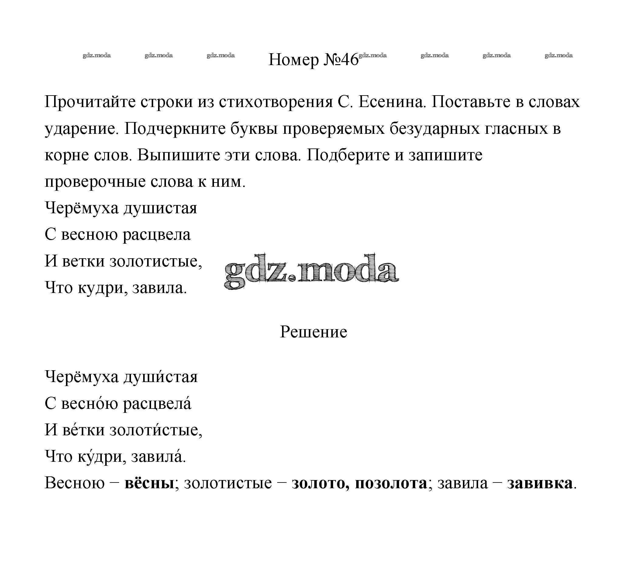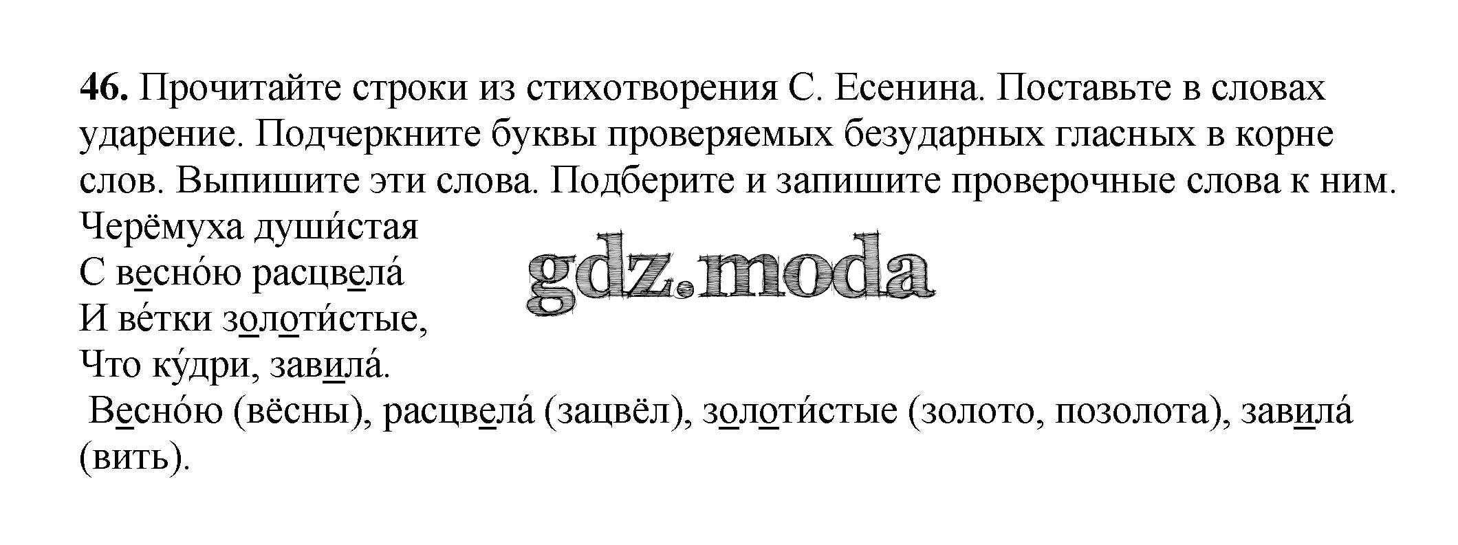 ОТВЕТ на задание № 46 Рабочая тетрадь по Русскому языку 3 класс Климанова Перспектива