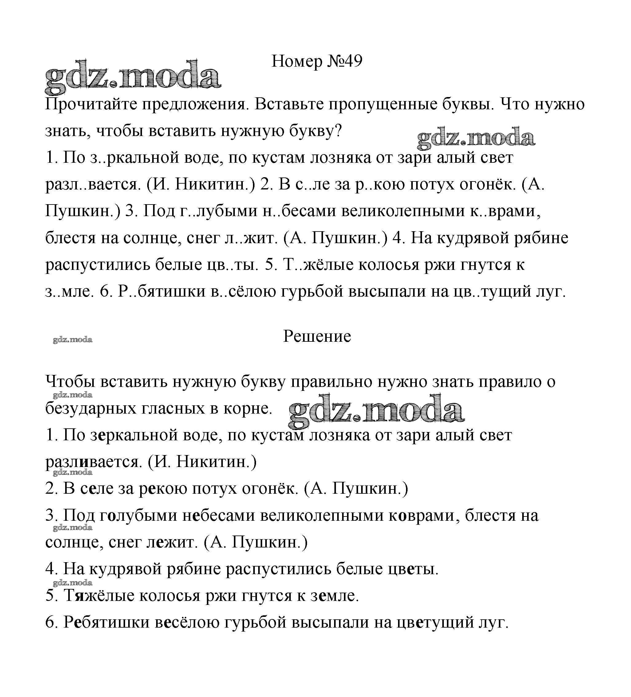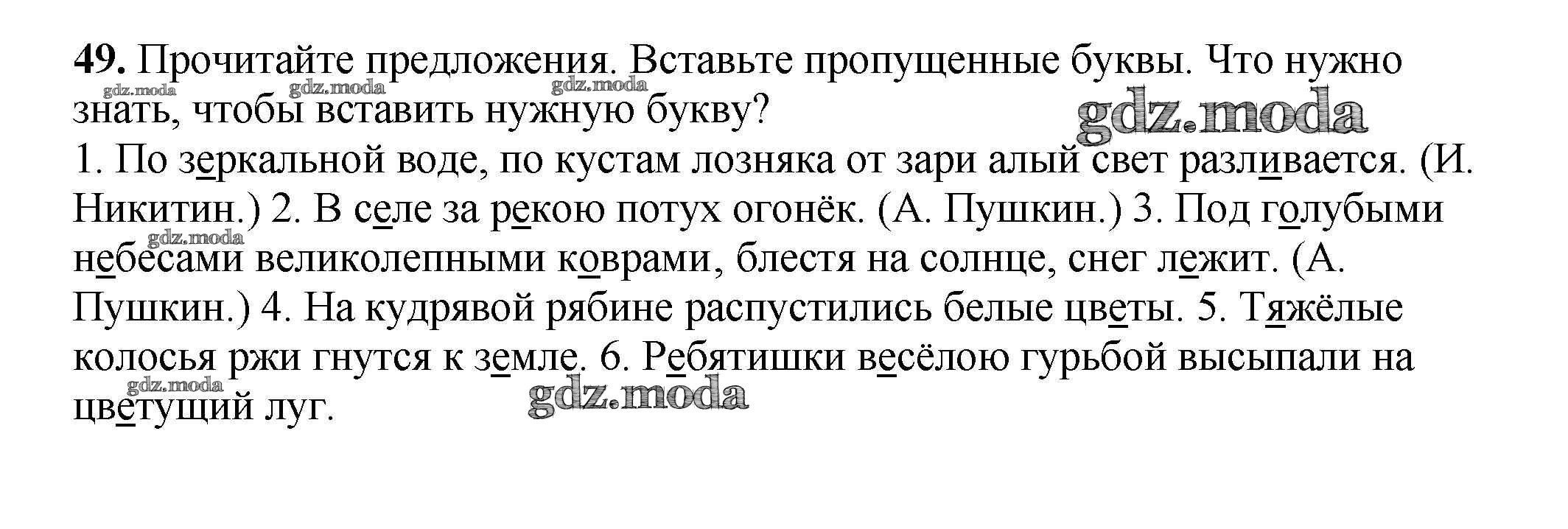 ОТВЕТ на задание № 49 Рабочая тетрадь по Русскому языку 3 класс Климанова Перспектива