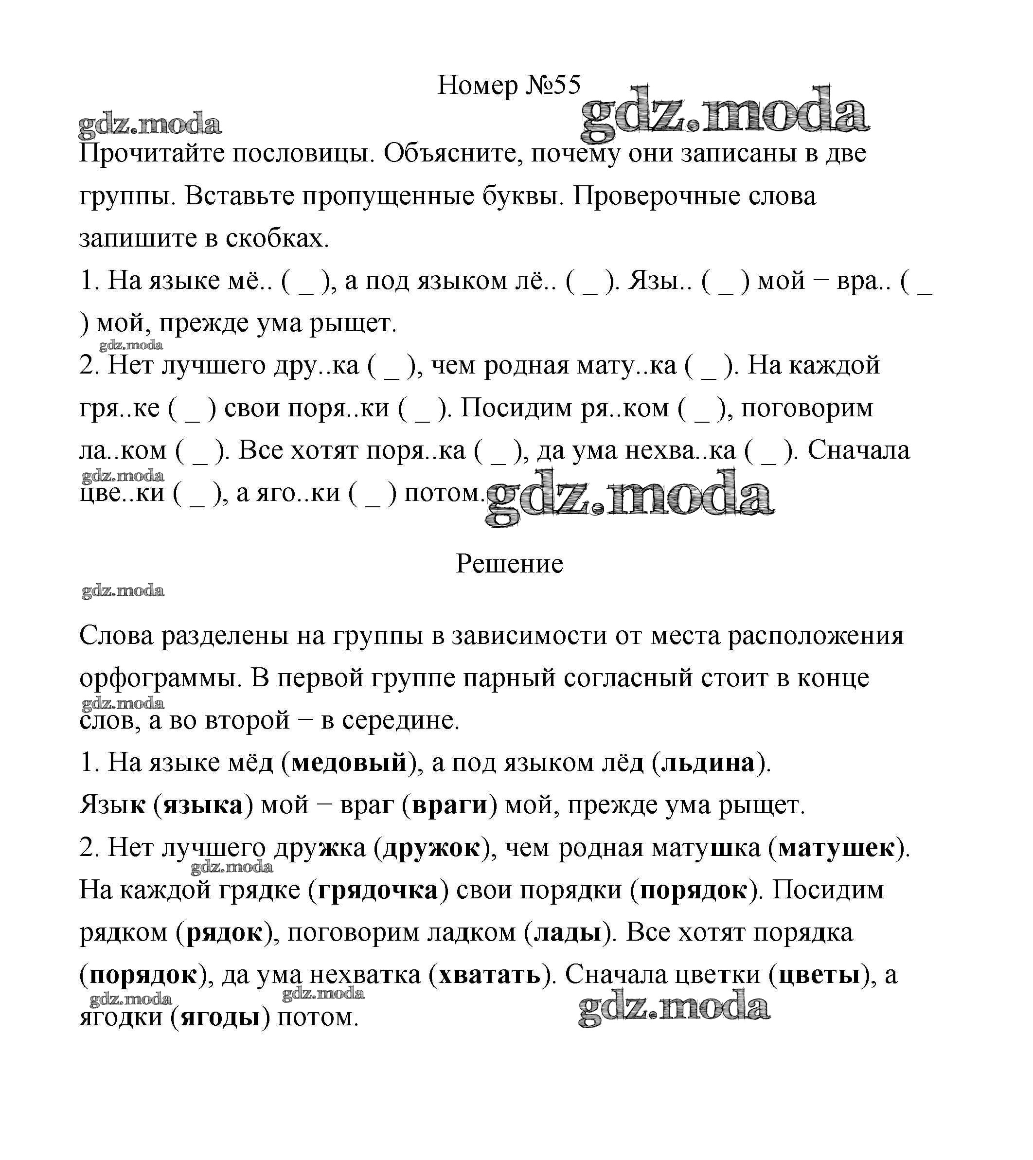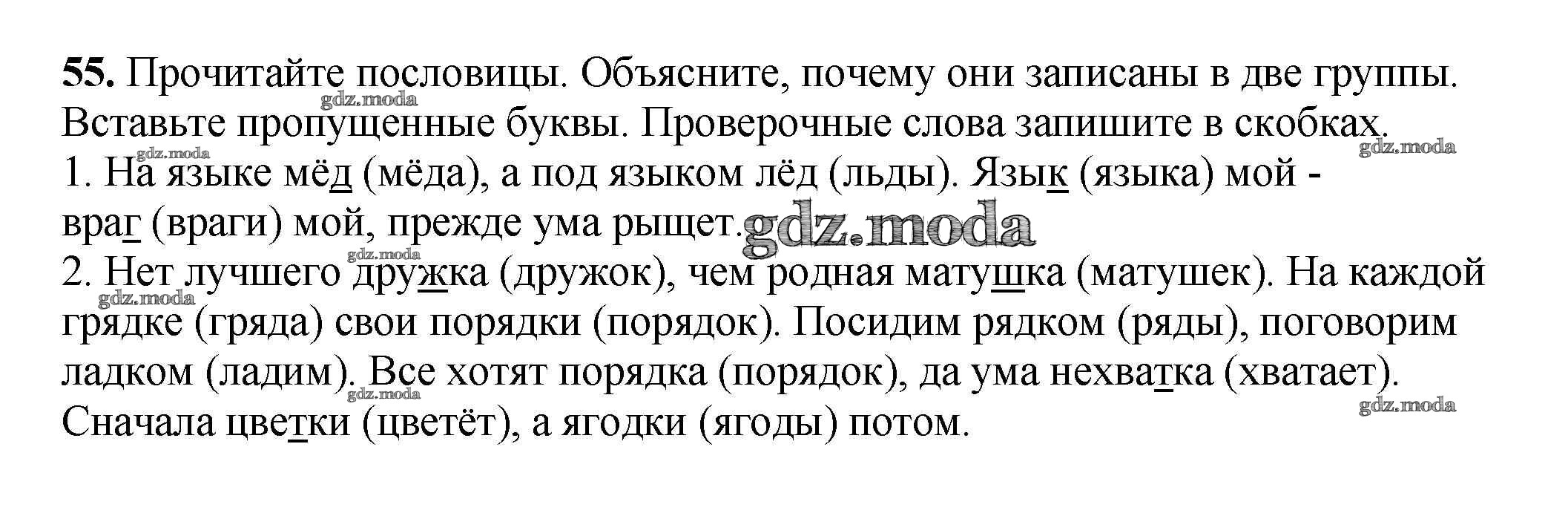 ОТВЕТ на задание № 55 Рабочая тетрадь по Русскому языку 3 класс Климанова Перспектива