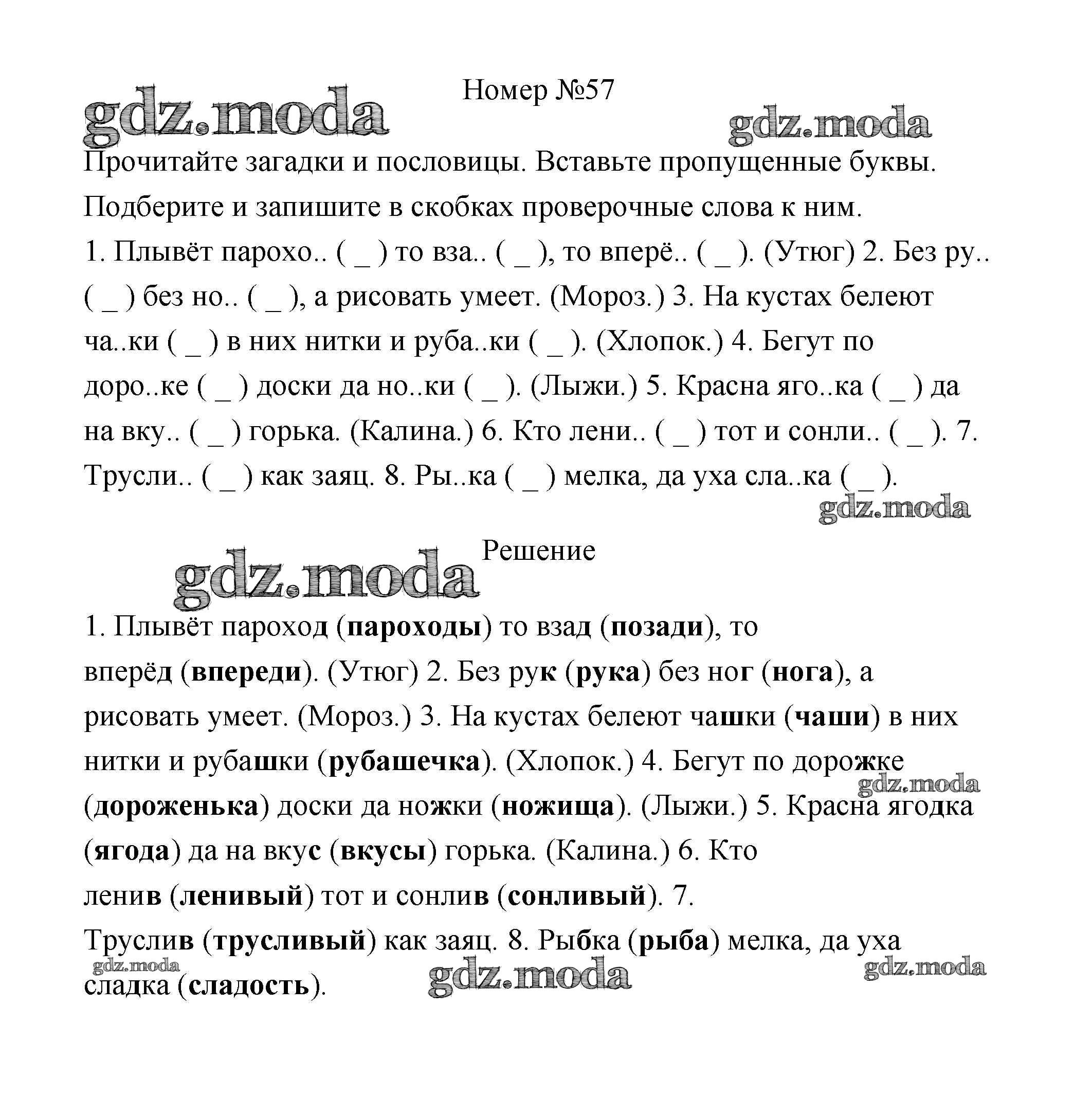 ОТВЕТ на задание № 57 Рабочая тетрадь по Русскому языку 3 класс Климанова Перспектива