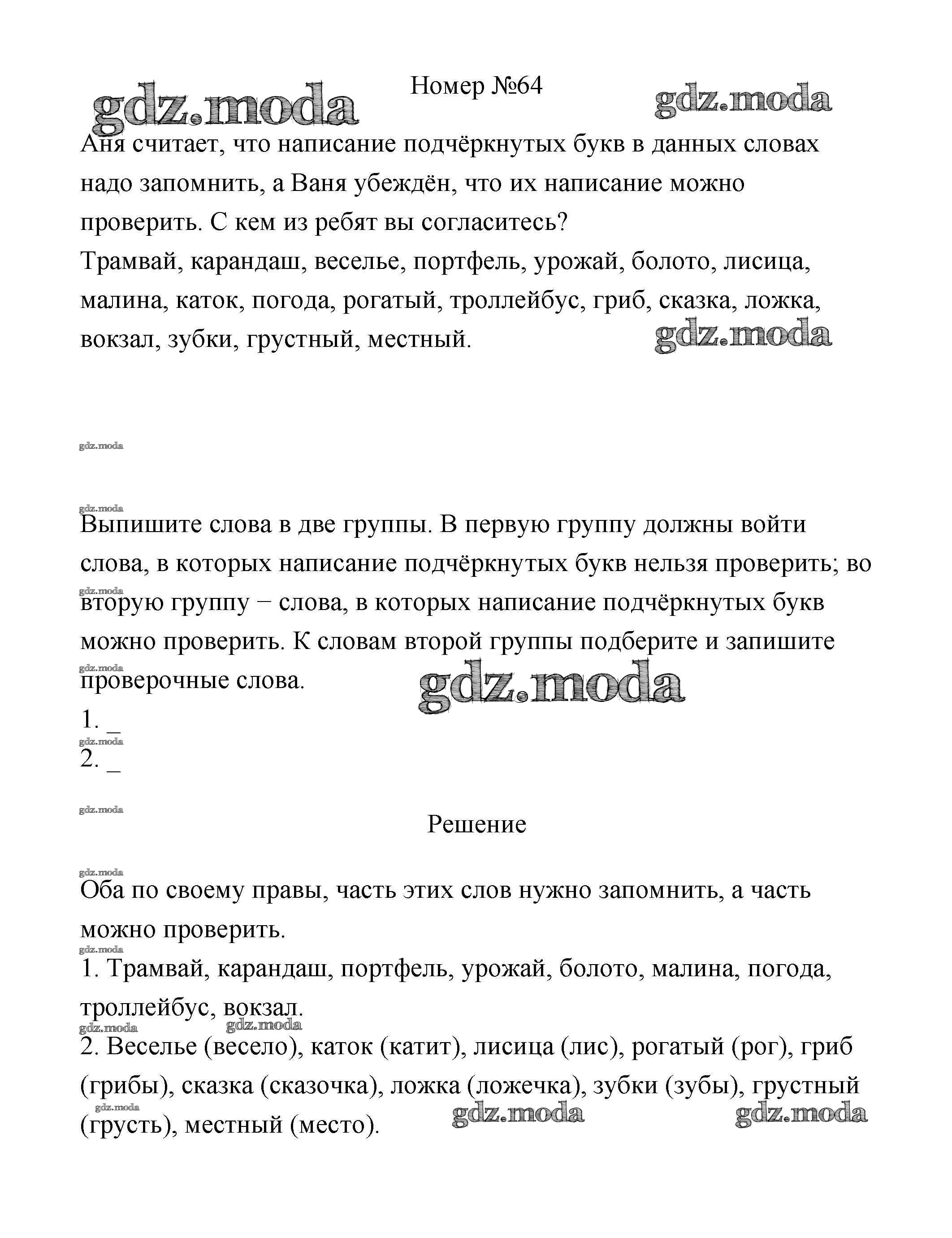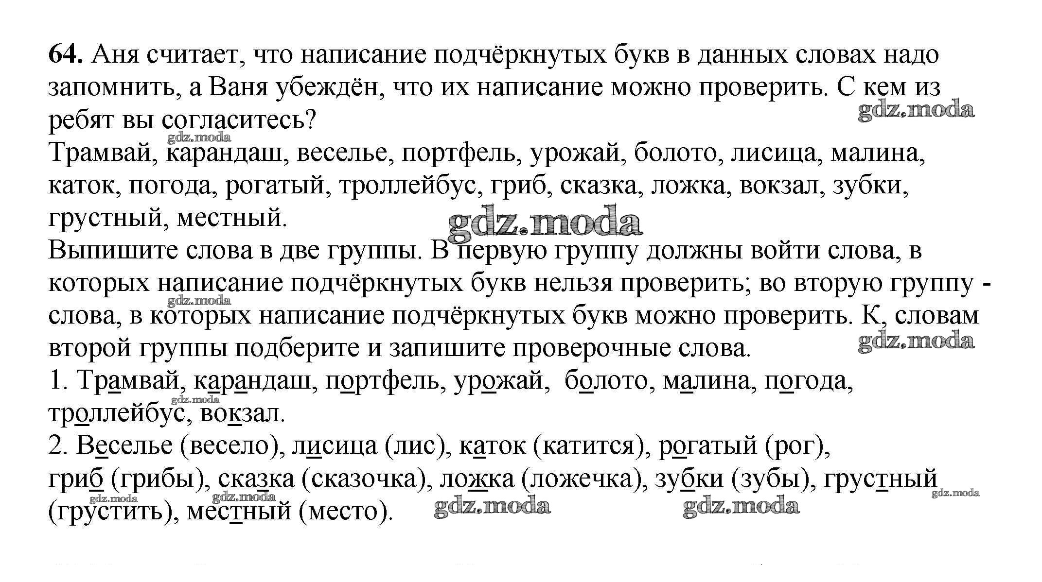 ОТВЕТ на задание № 64 Рабочая тетрадь по Русскому языку 3 класс Климанова Перспектива