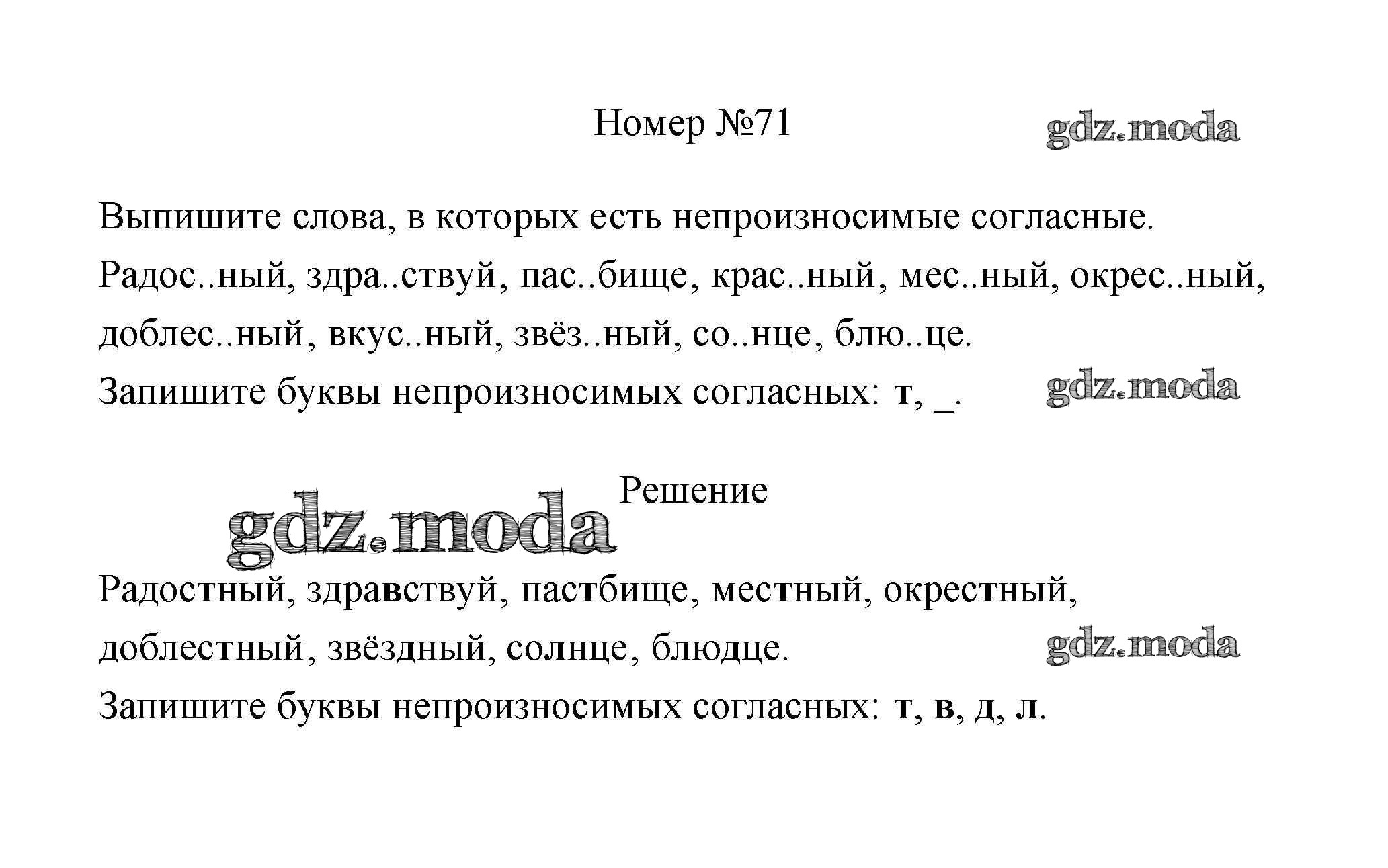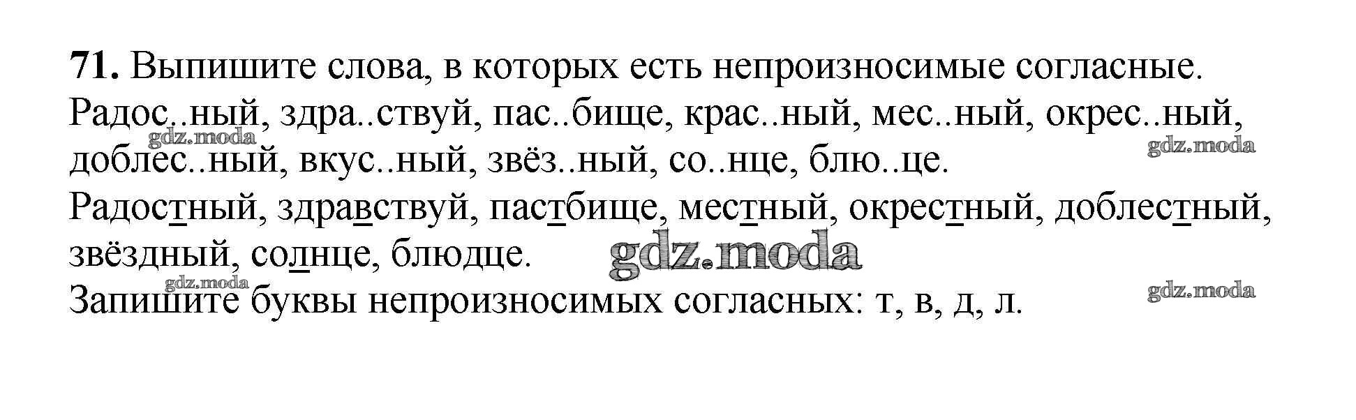 ОТВЕТ на задание № 71 Рабочая тетрадь по Русскому языку 3 класс Климанова Перспектива