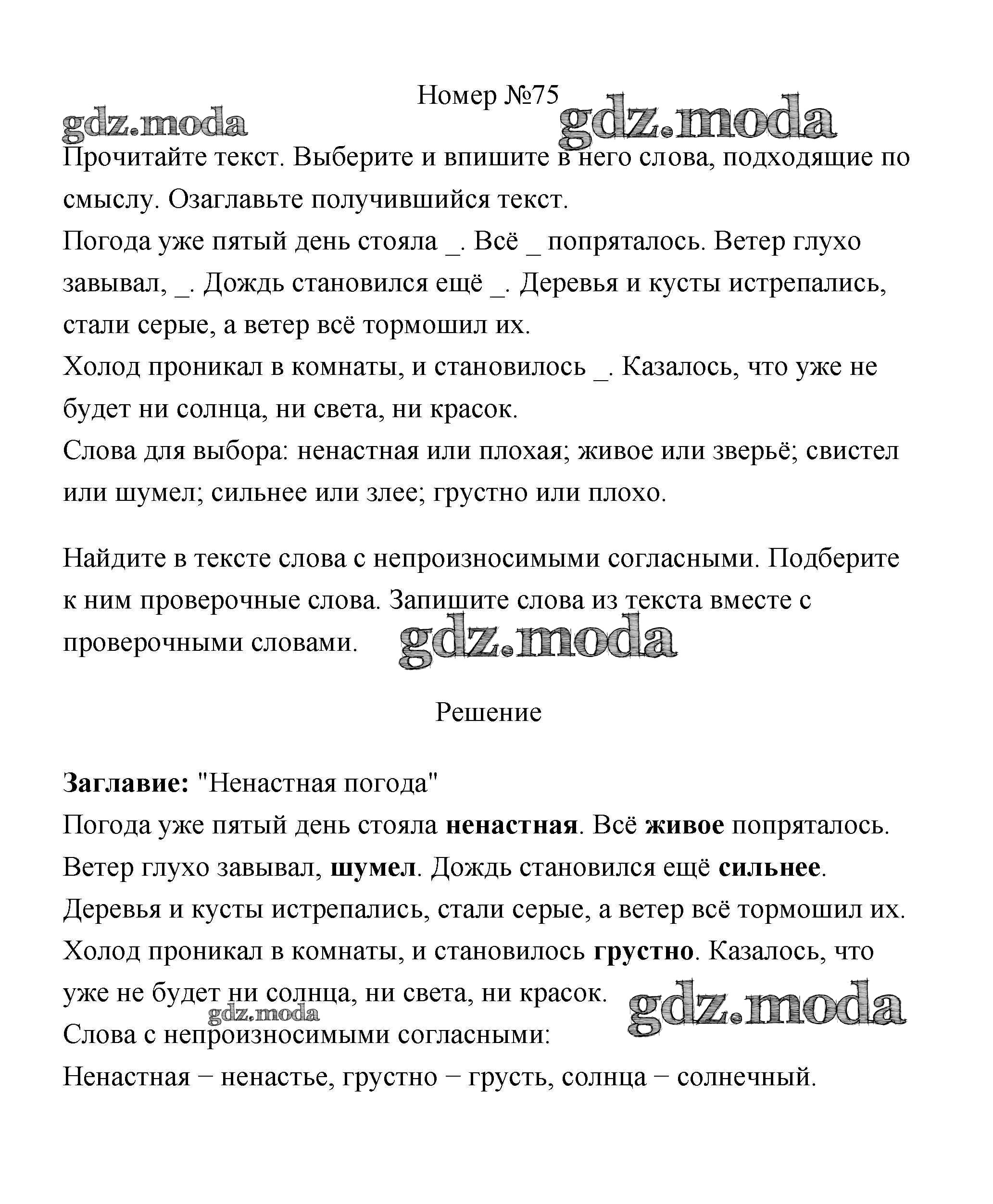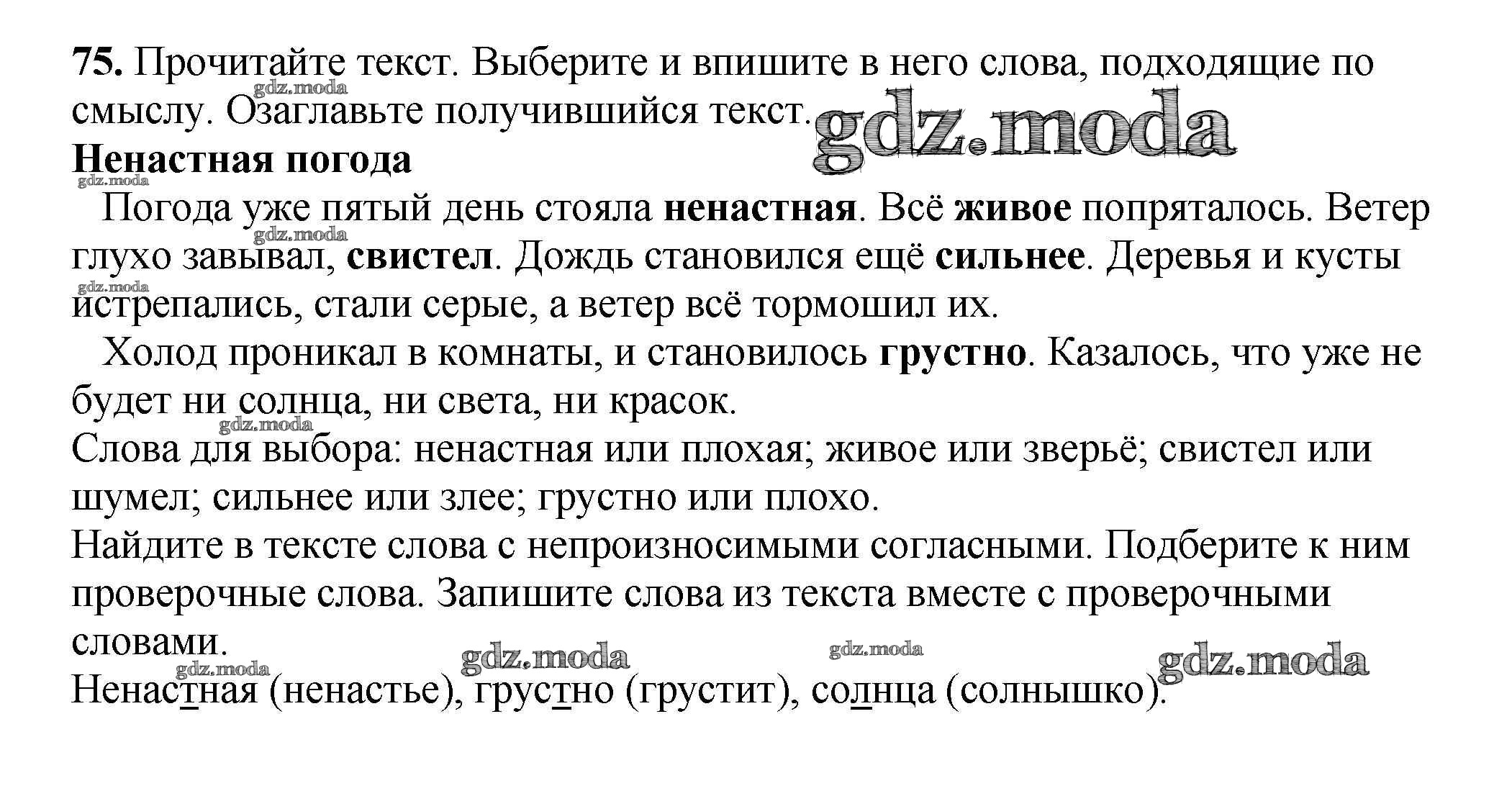ОТВЕТ на задание № 75 Рабочая тетрадь по Русскому языку 3 класс Климанова Перспектива
