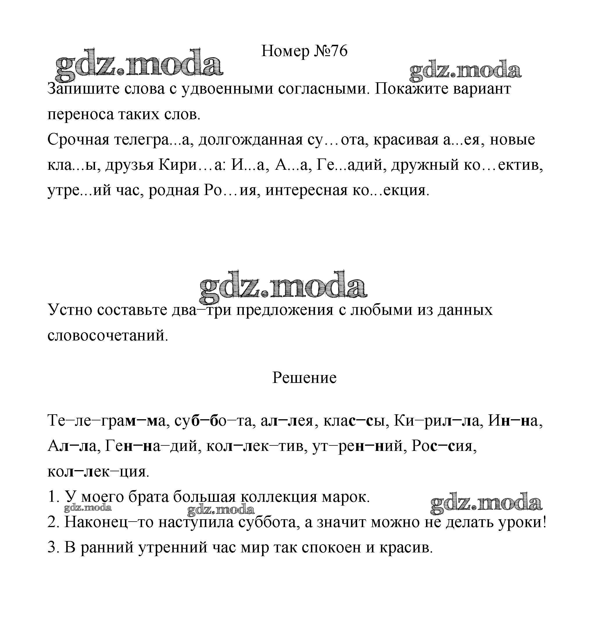 ОТВЕТ на задание № 76 Рабочая тетрадь по Русскому языку 3 класс Климанова Перспектива