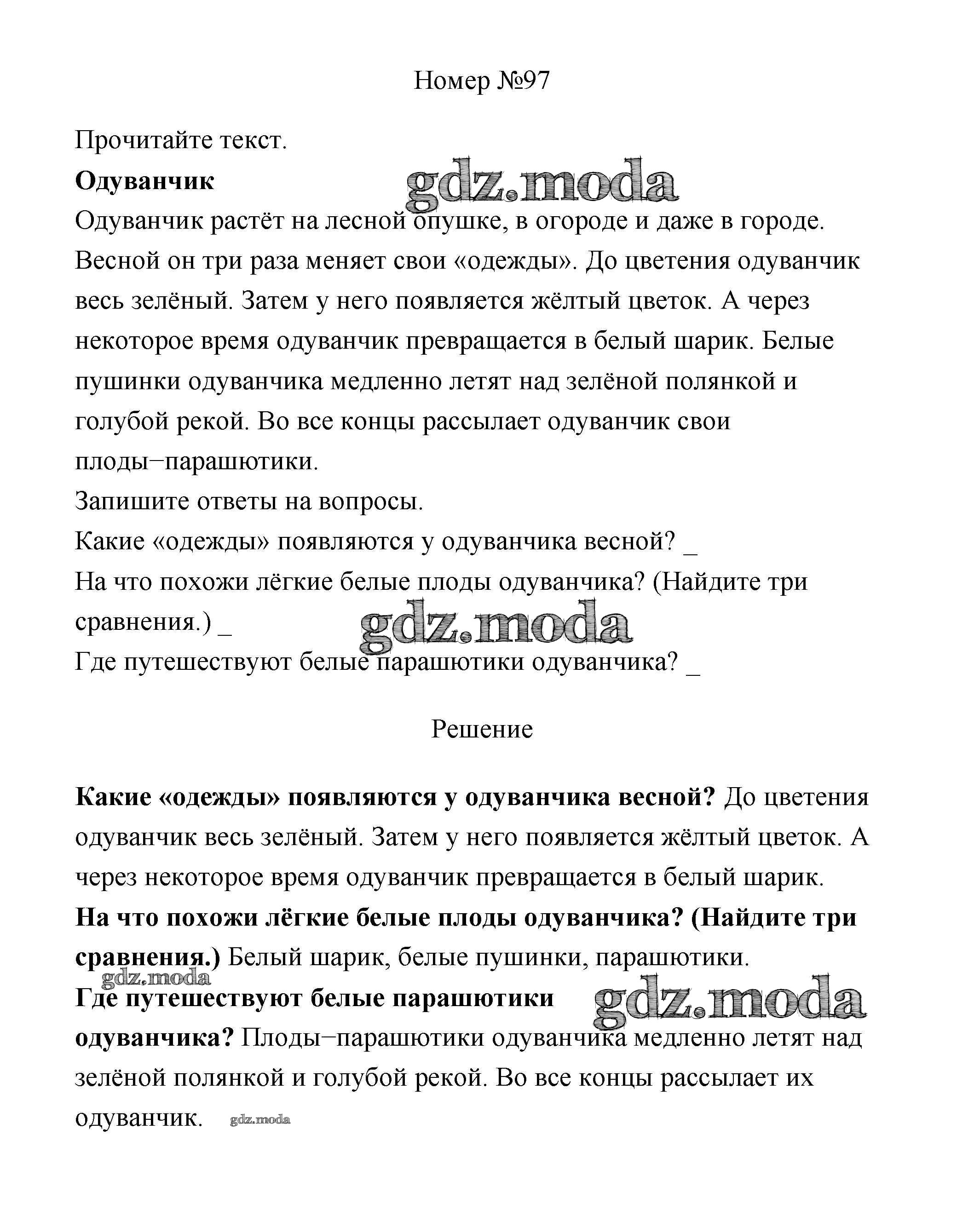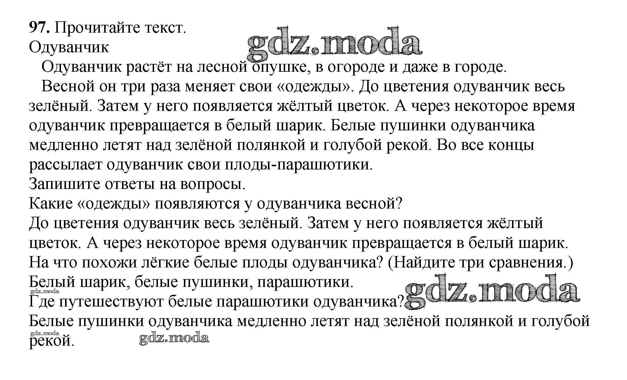 ОТВЕТ на задание № 97 Рабочая тетрадь по Русскому языку 3 класс Климанова Перспектива