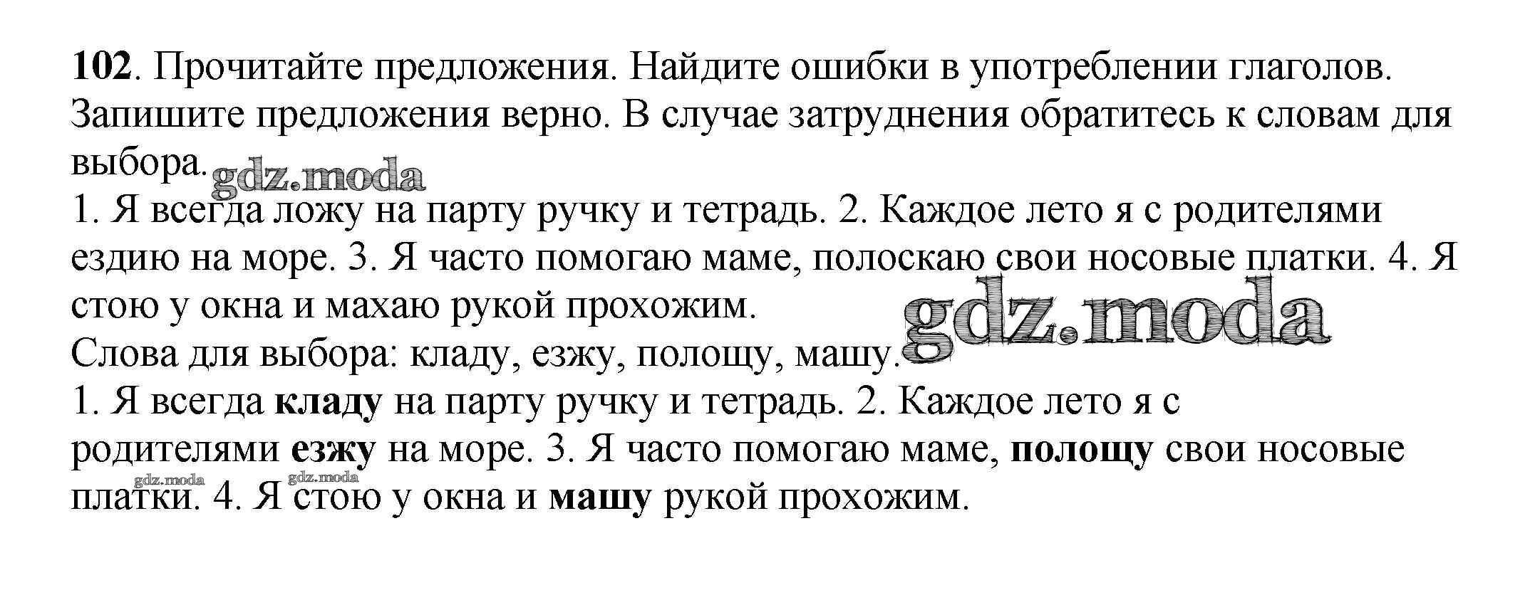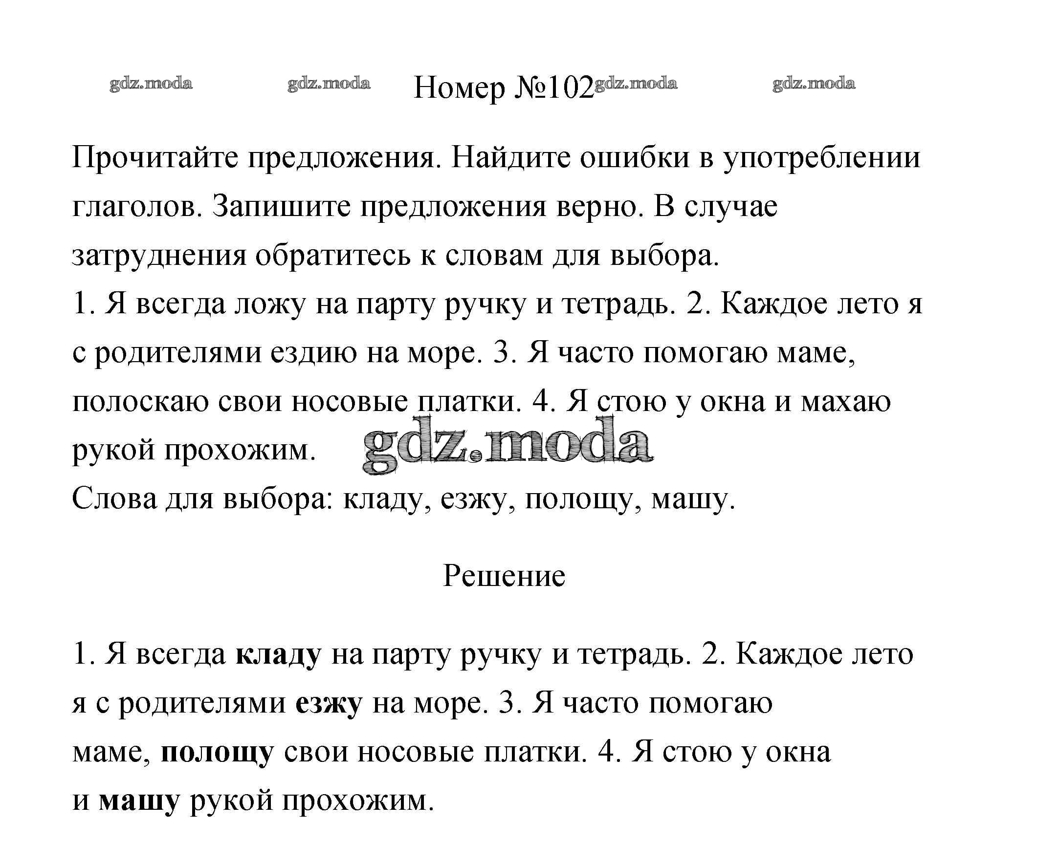 ОТВЕТ на задание № 102 Рабочая тетрадь по Русскому языку 3 класс Климанова Перспектива