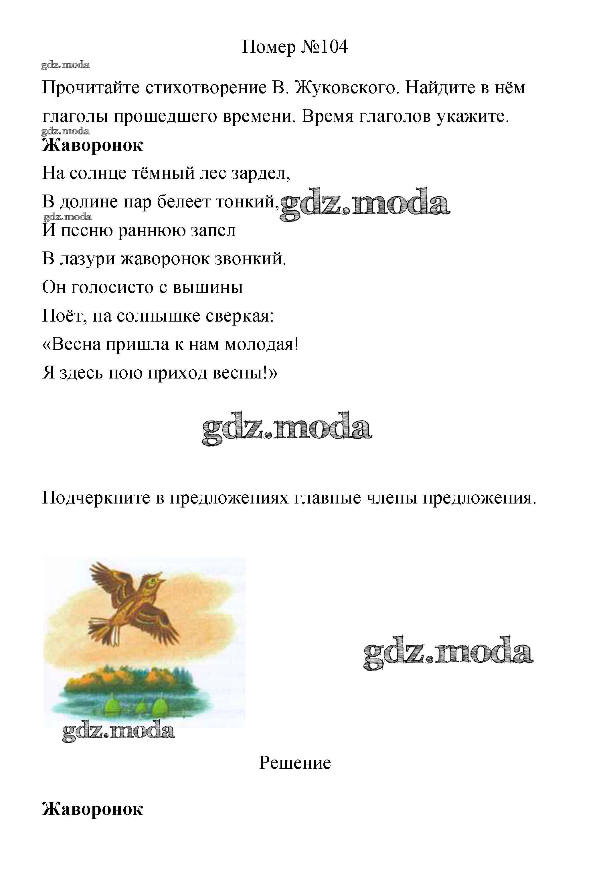 ОТВЕТ на задание № 104 Рабочая тетрадь по Русскому языку 3 класс Климанова Перспектива