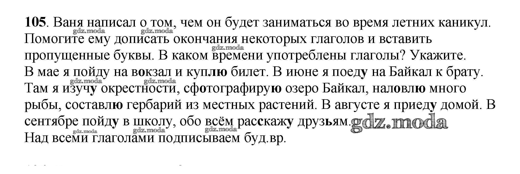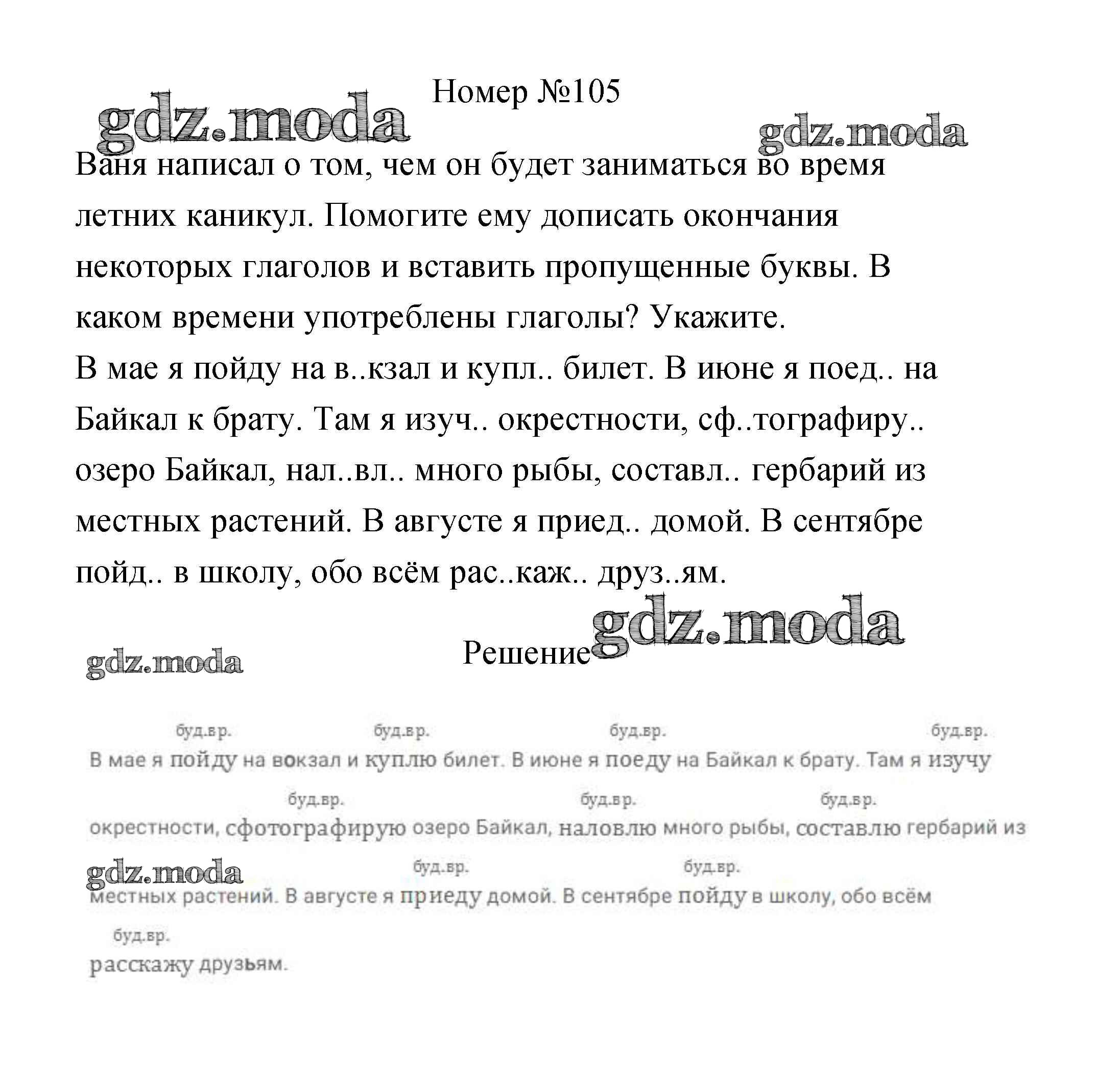 ОТВЕТ на задание № 105 Рабочая тетрадь по Русскому языку 3 класс Климанова Перспектива