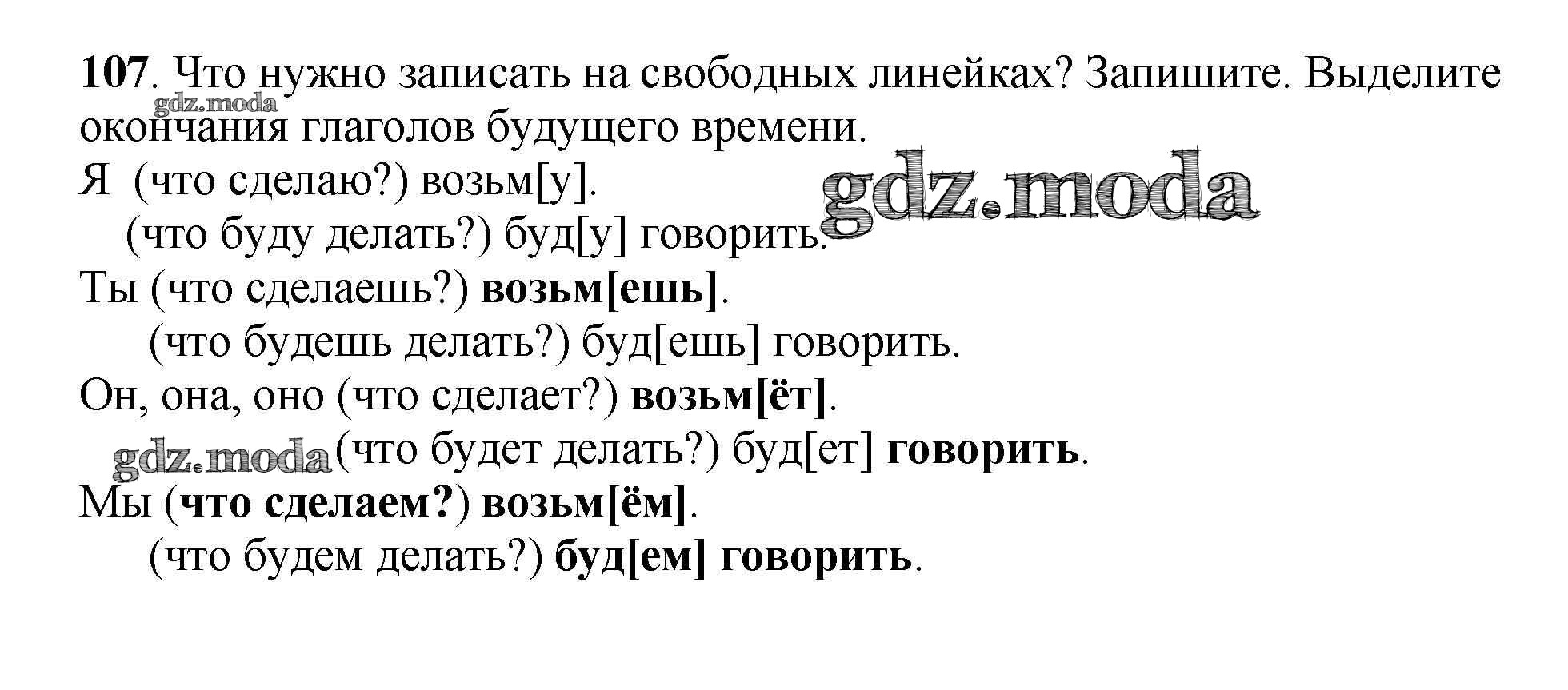 ОТВЕТ на задание № 107 Рабочая тетрадь по Русскому языку 3 класс Климанова Перспектива