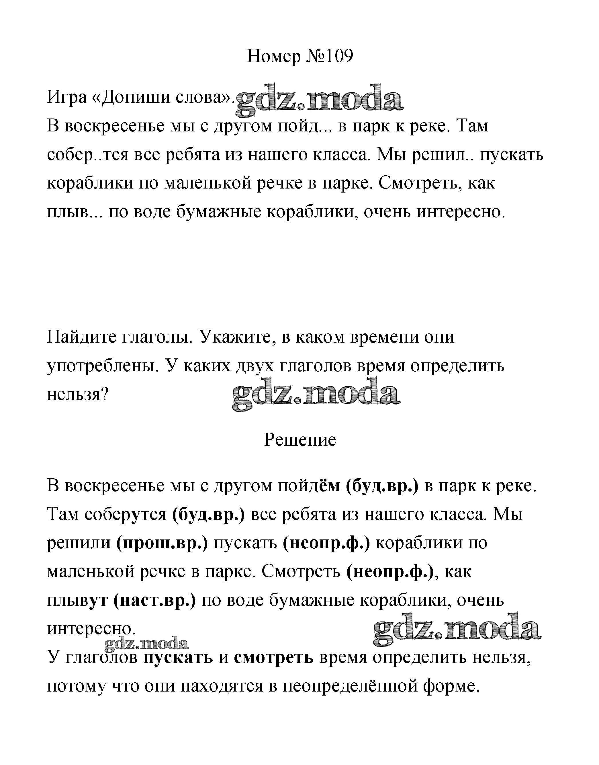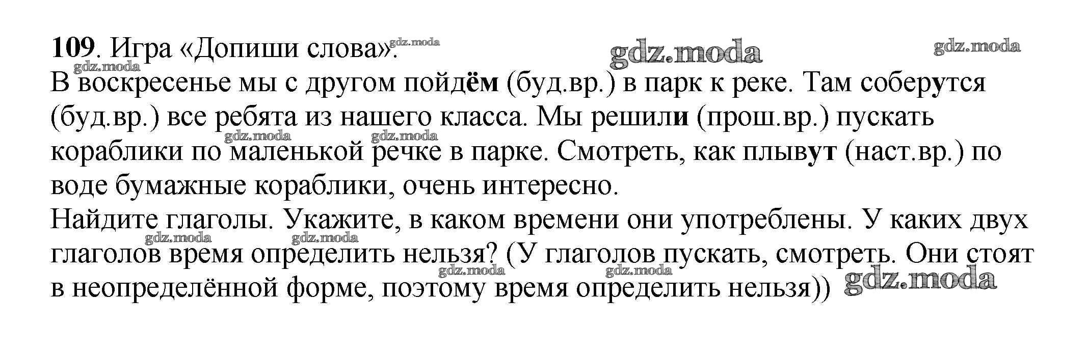 ОТВЕТ на задание № 109 Рабочая тетрадь по Русскому языку 3 класс Климанова Перспектива