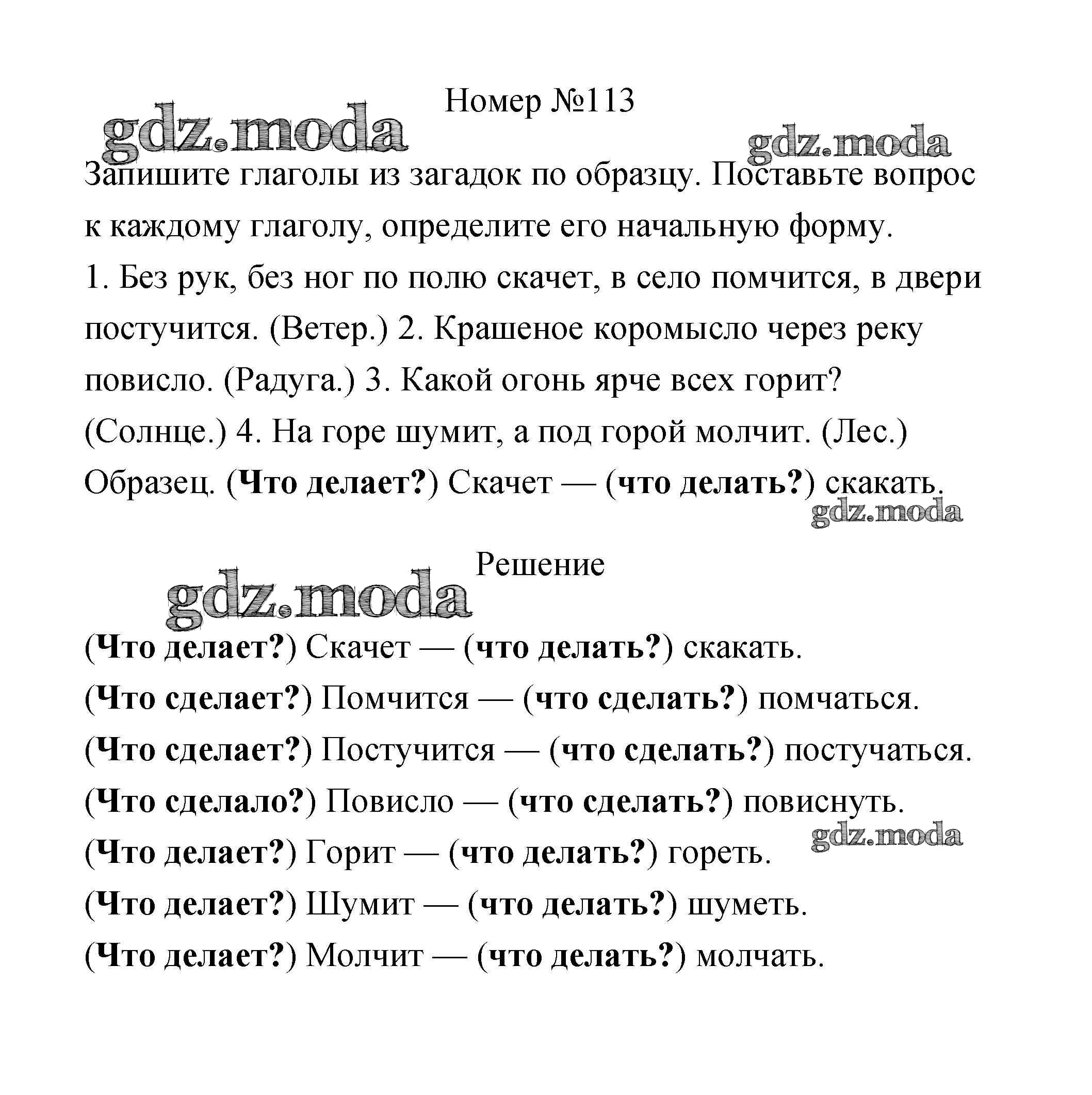 ОТВЕТ на задание № 113 Рабочая тетрадь по Русскому языку 3 класс Климанова Перспектива
